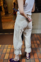 ・実寸サイズ(平置き採寸) ウエスト/36cm 股上/26cm 股下/60.5cm わたり幅/29.5cm 裾幅/12-25cm