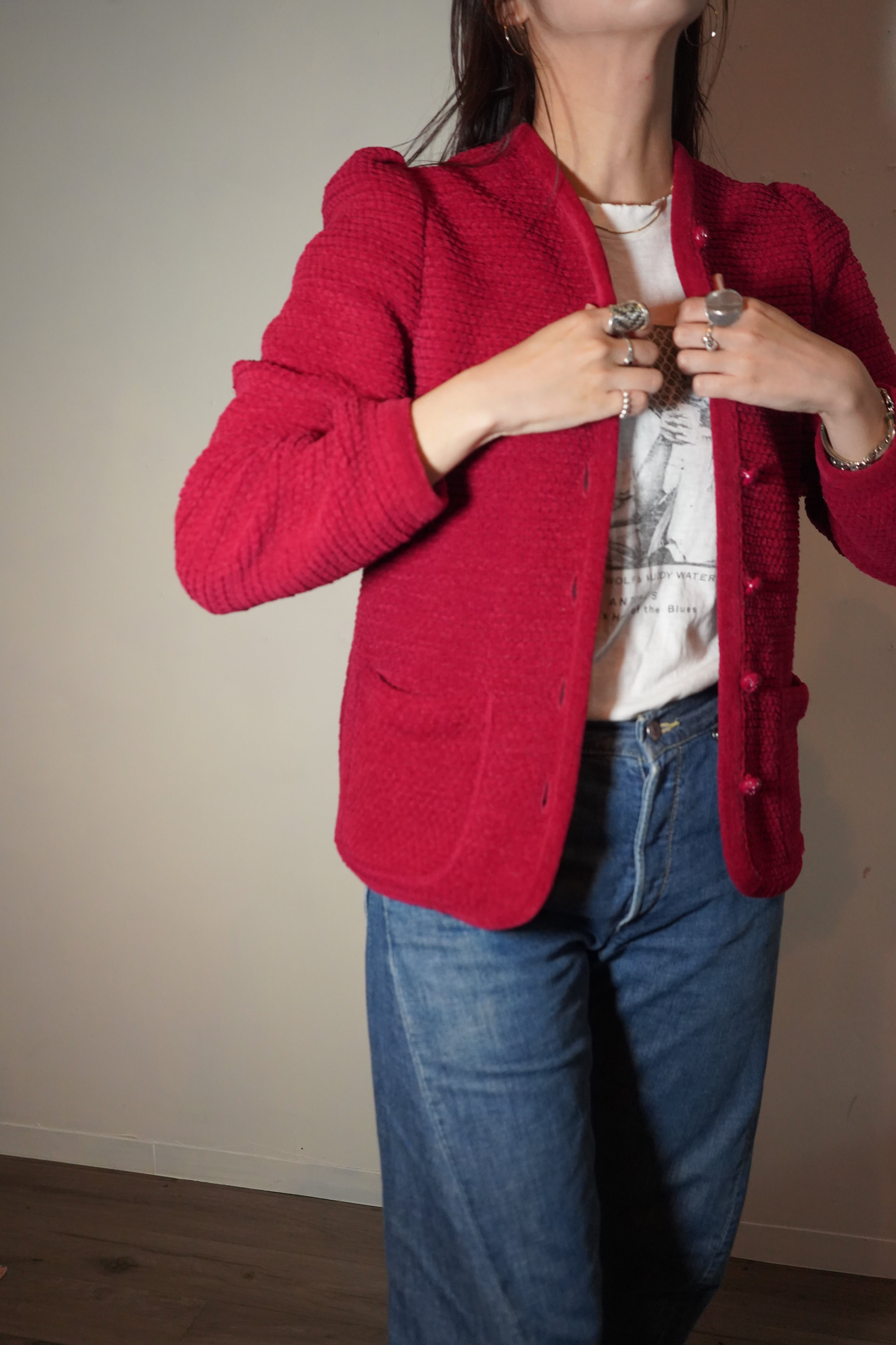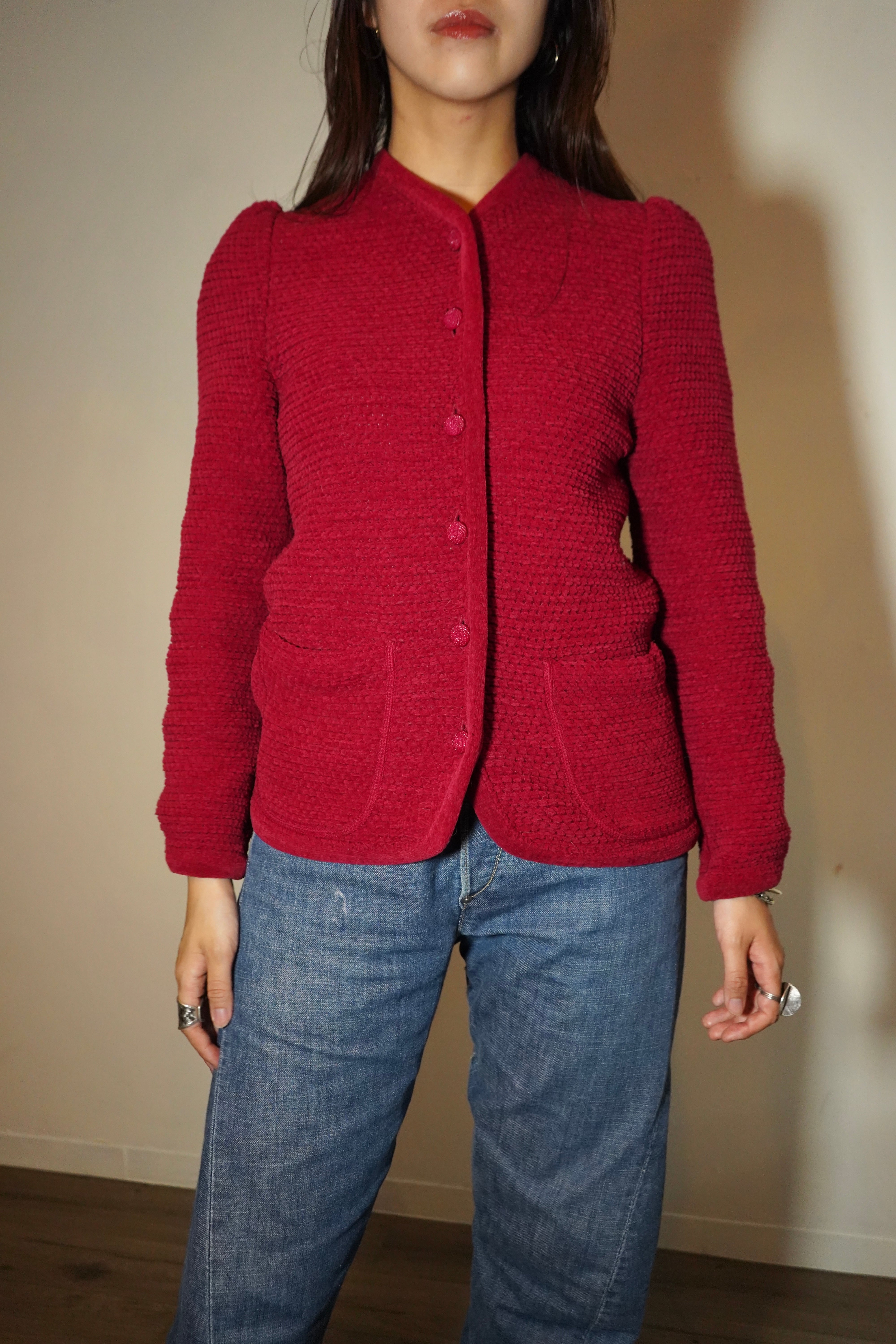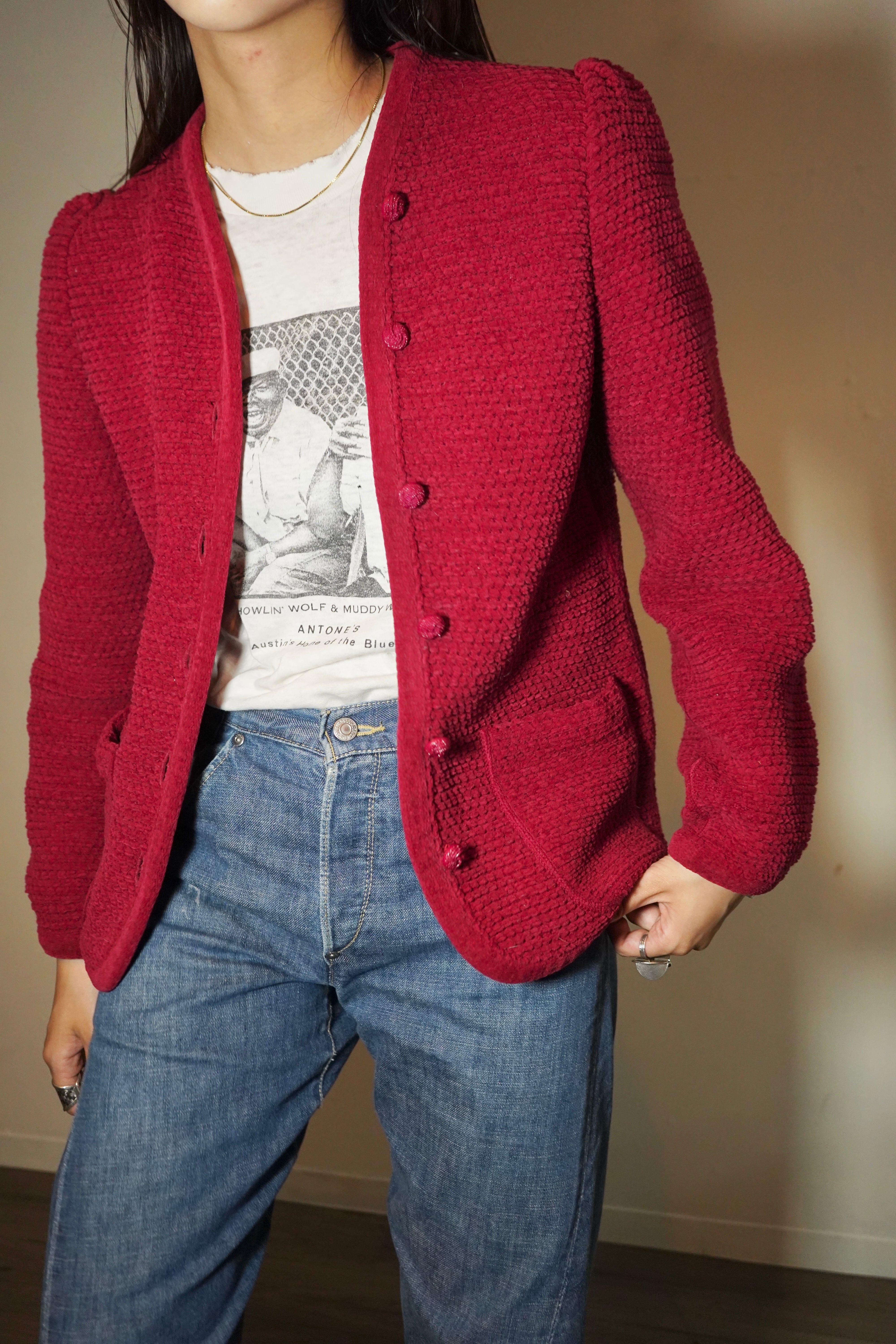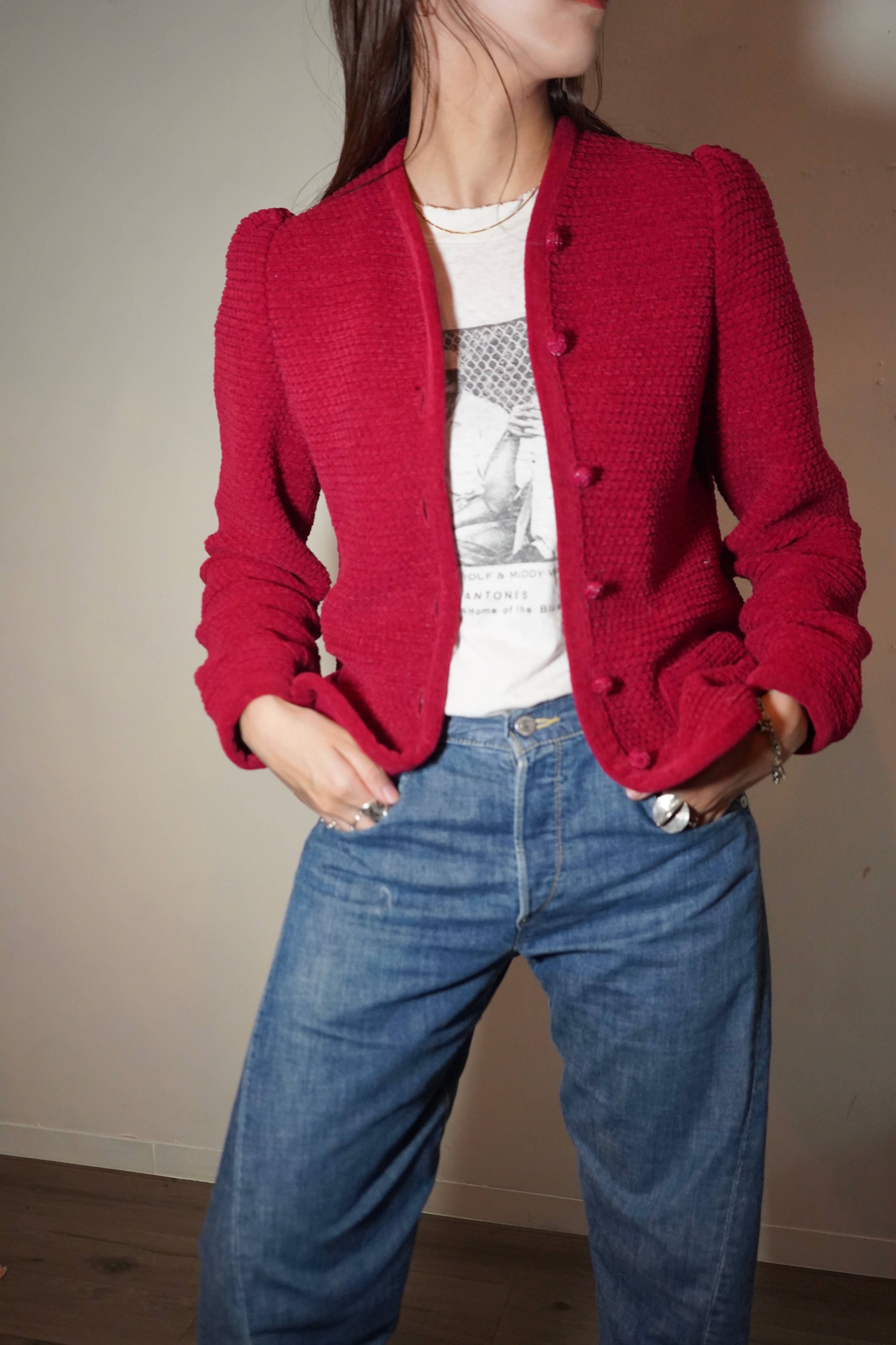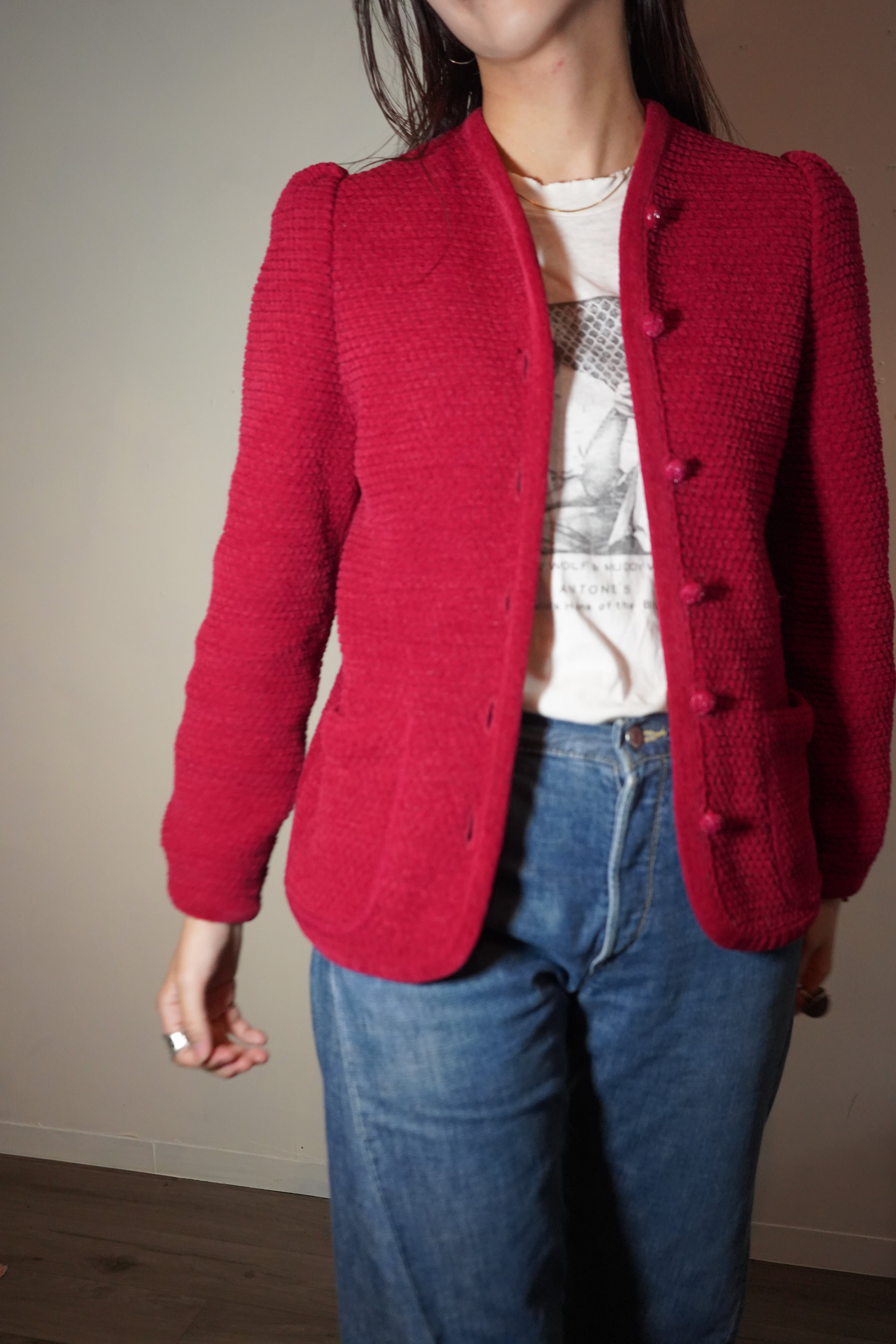 80s puff sleeve knit cardigan