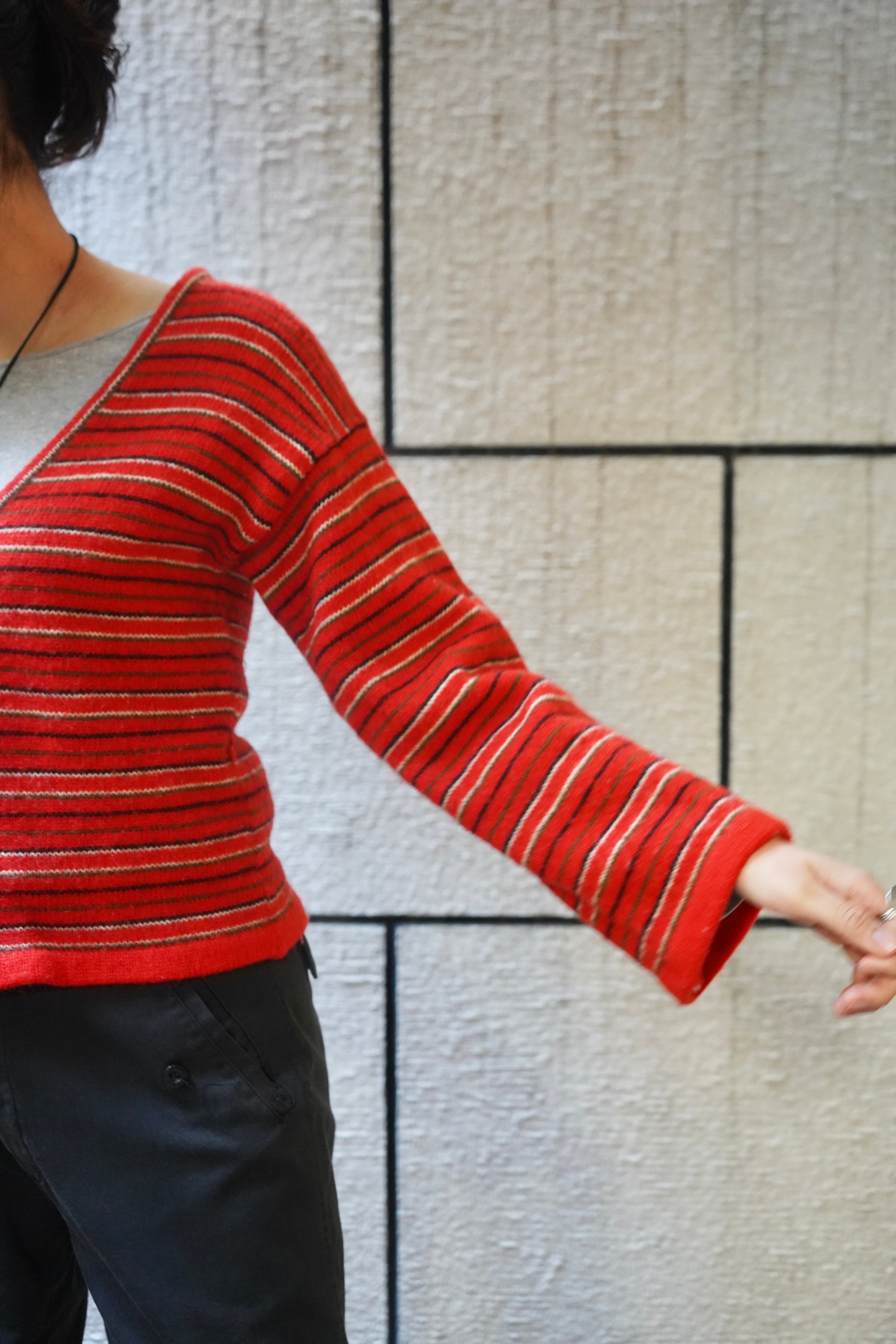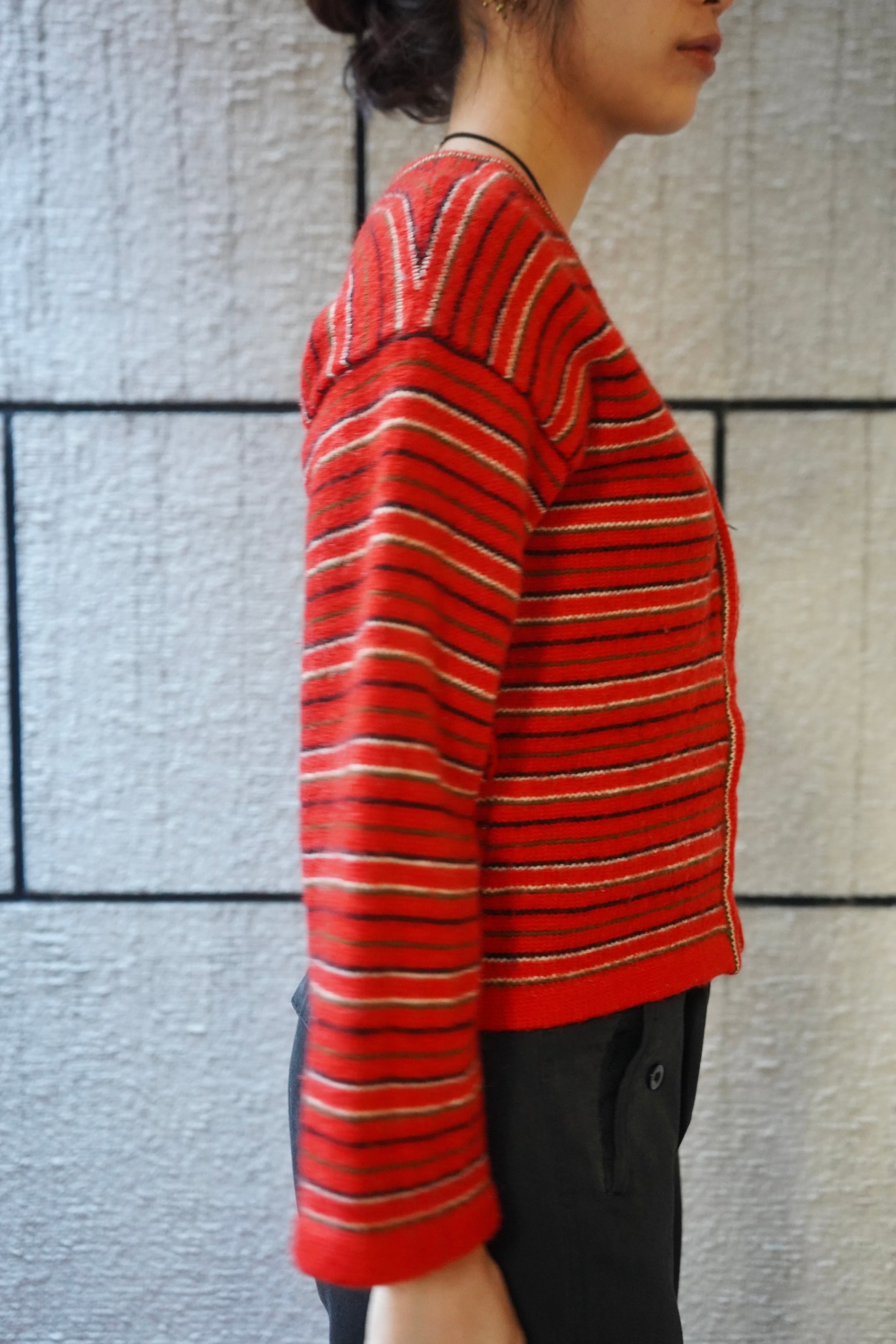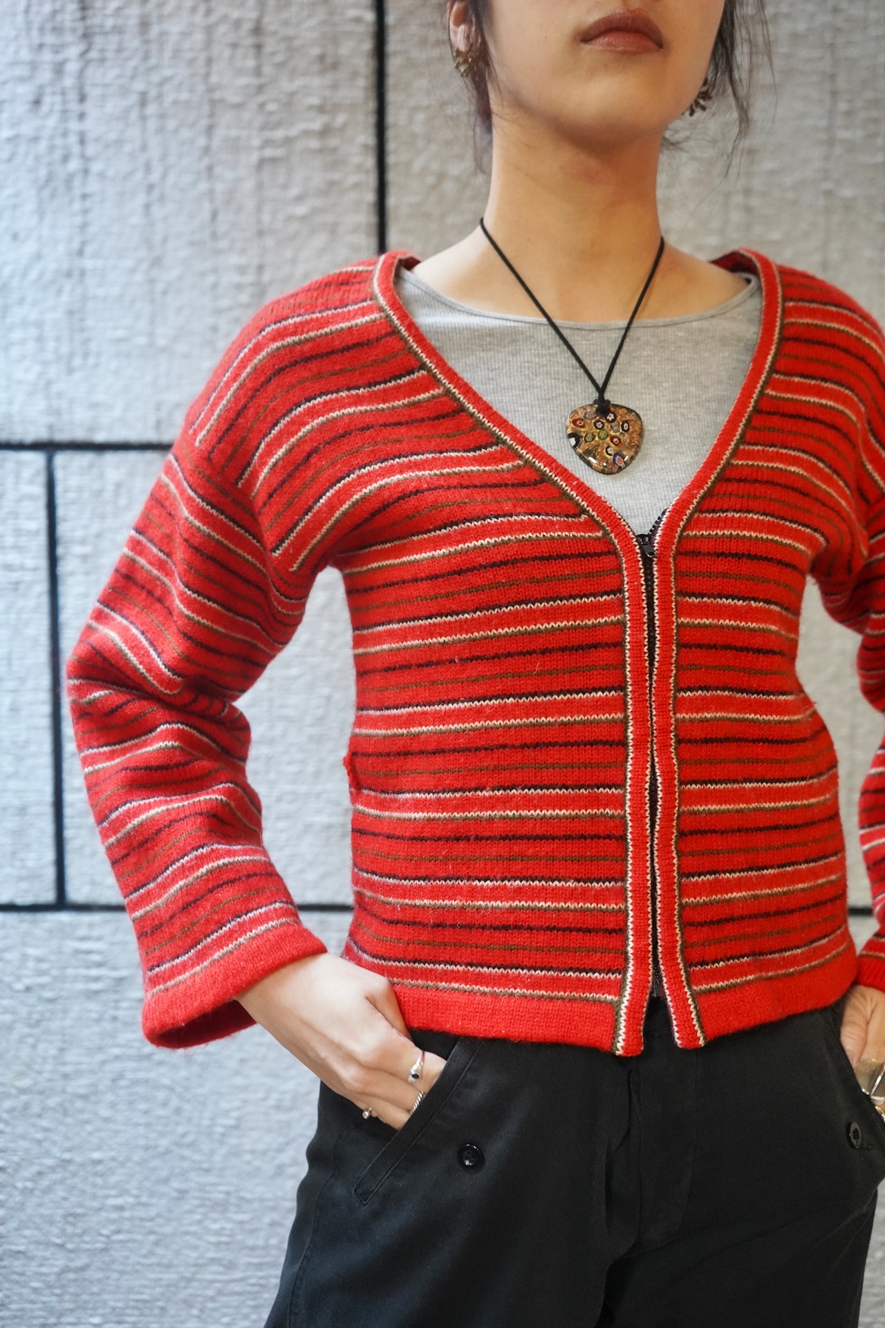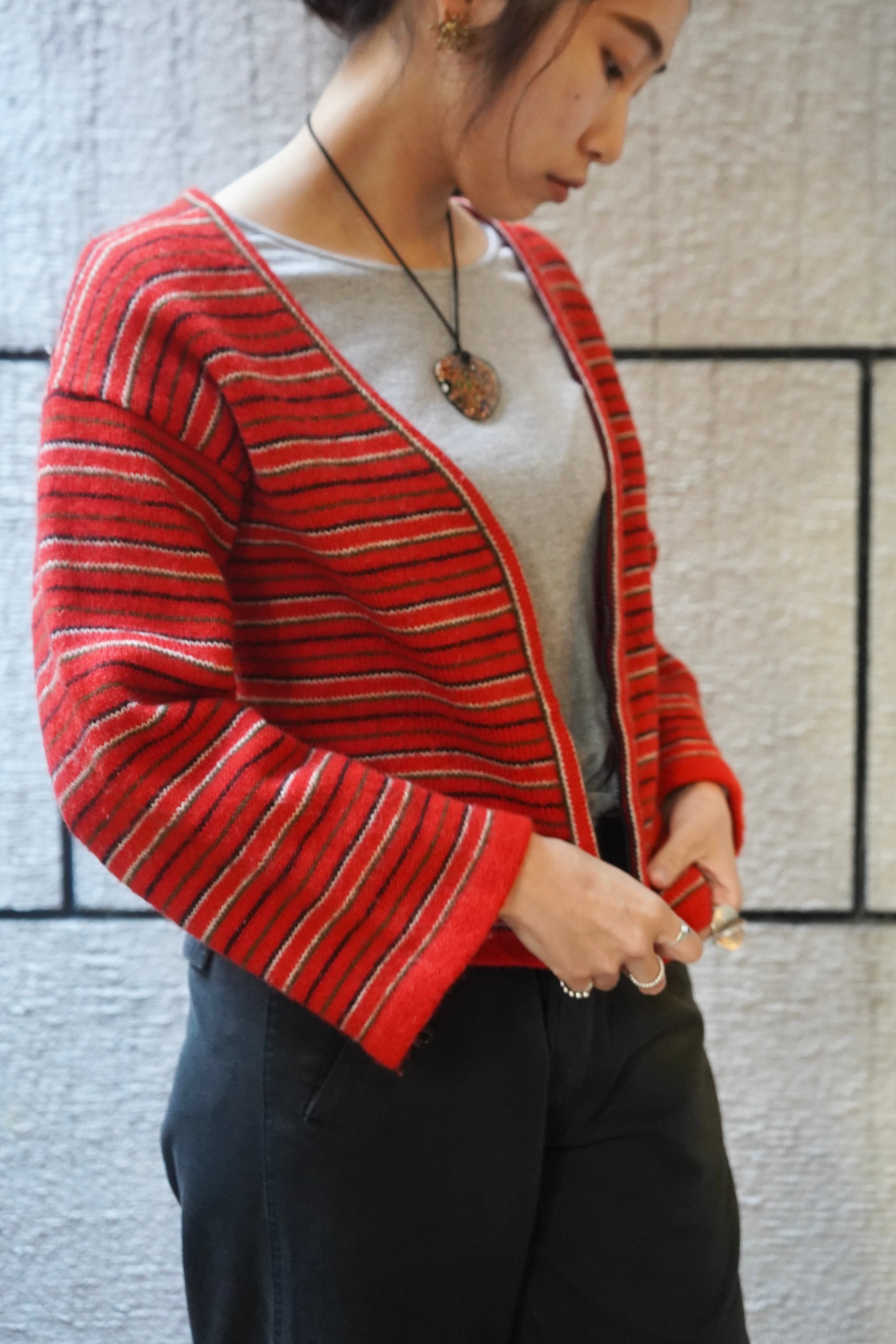 stripe wool zip knit cardigan