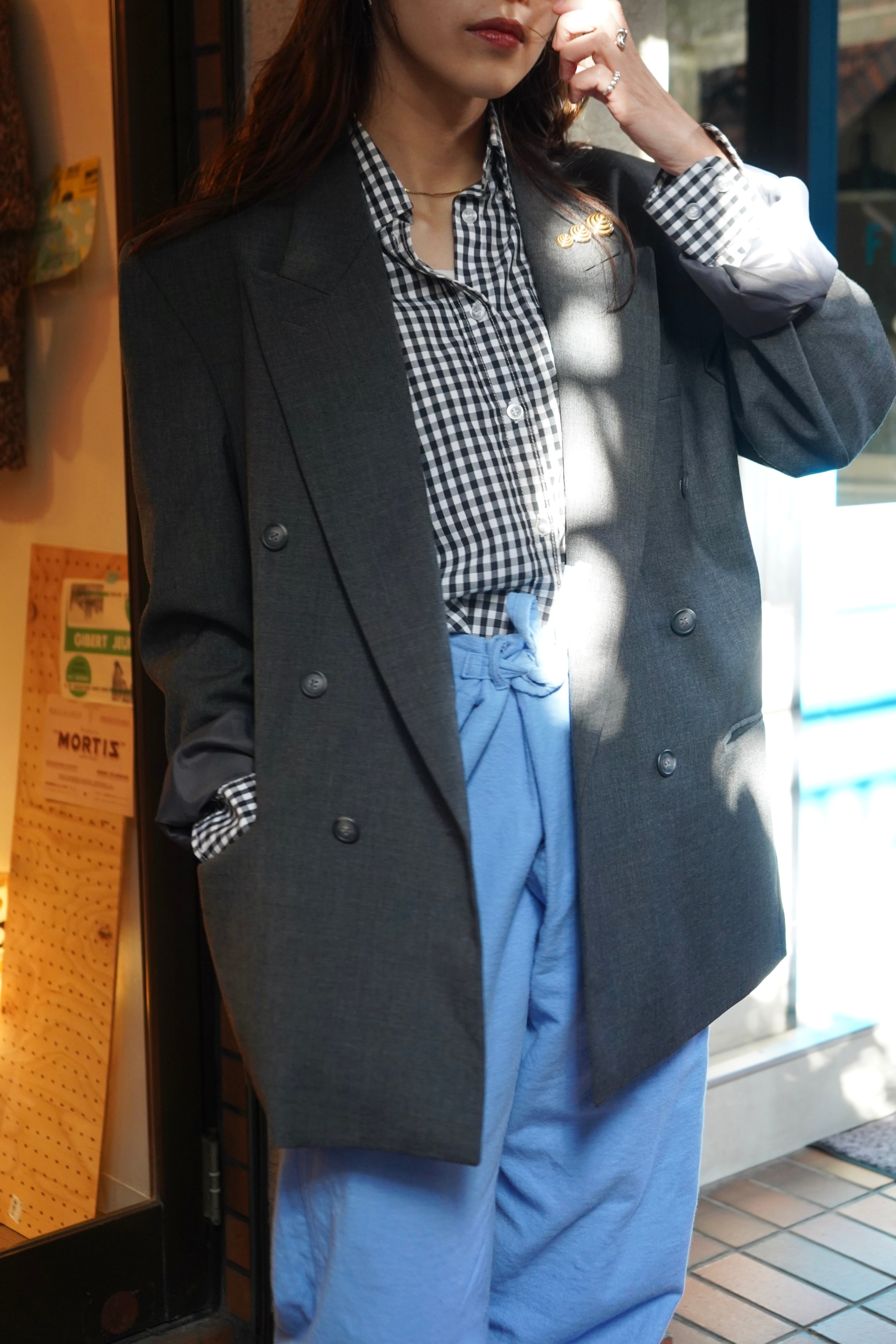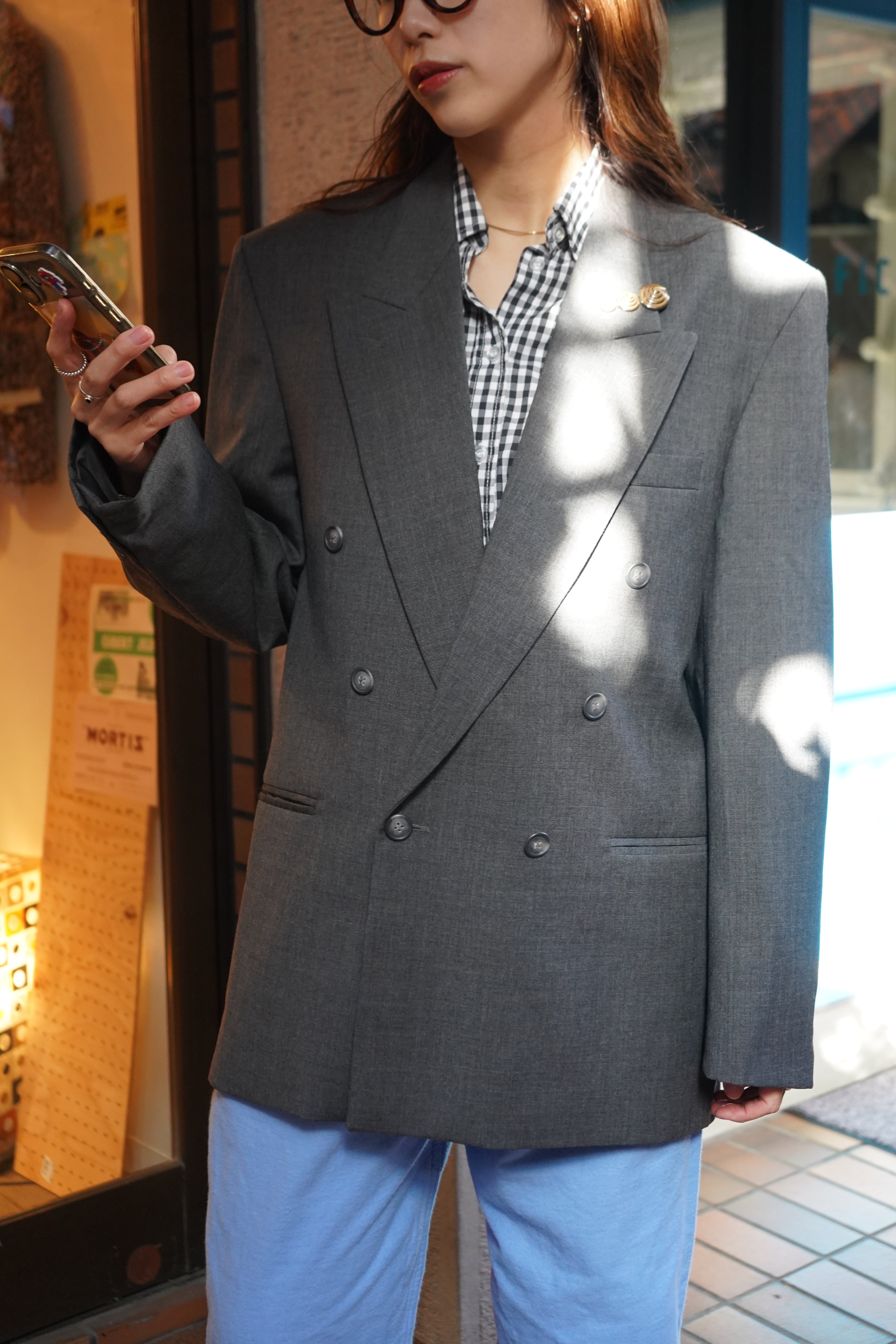 gray double tailored jacket