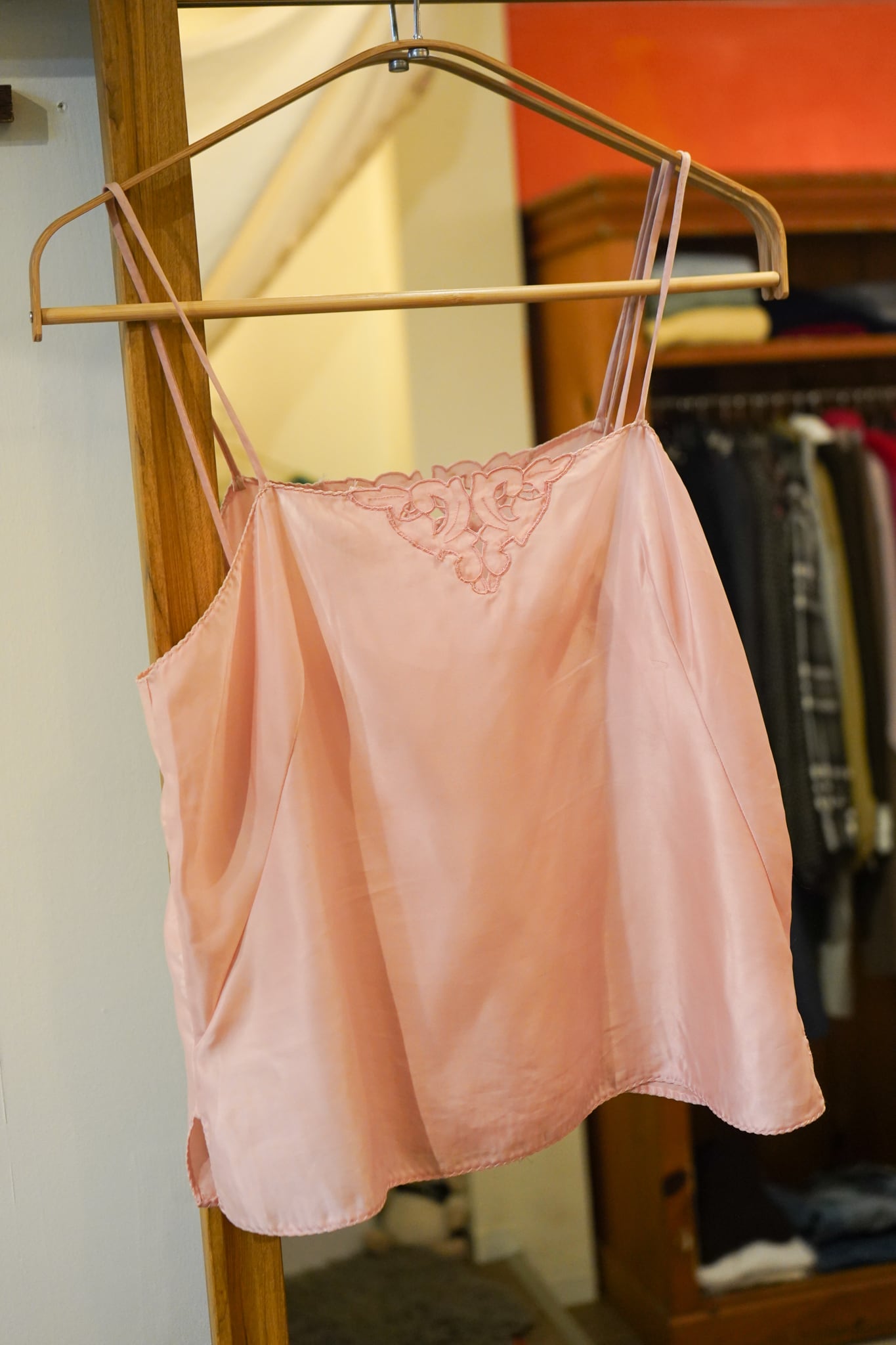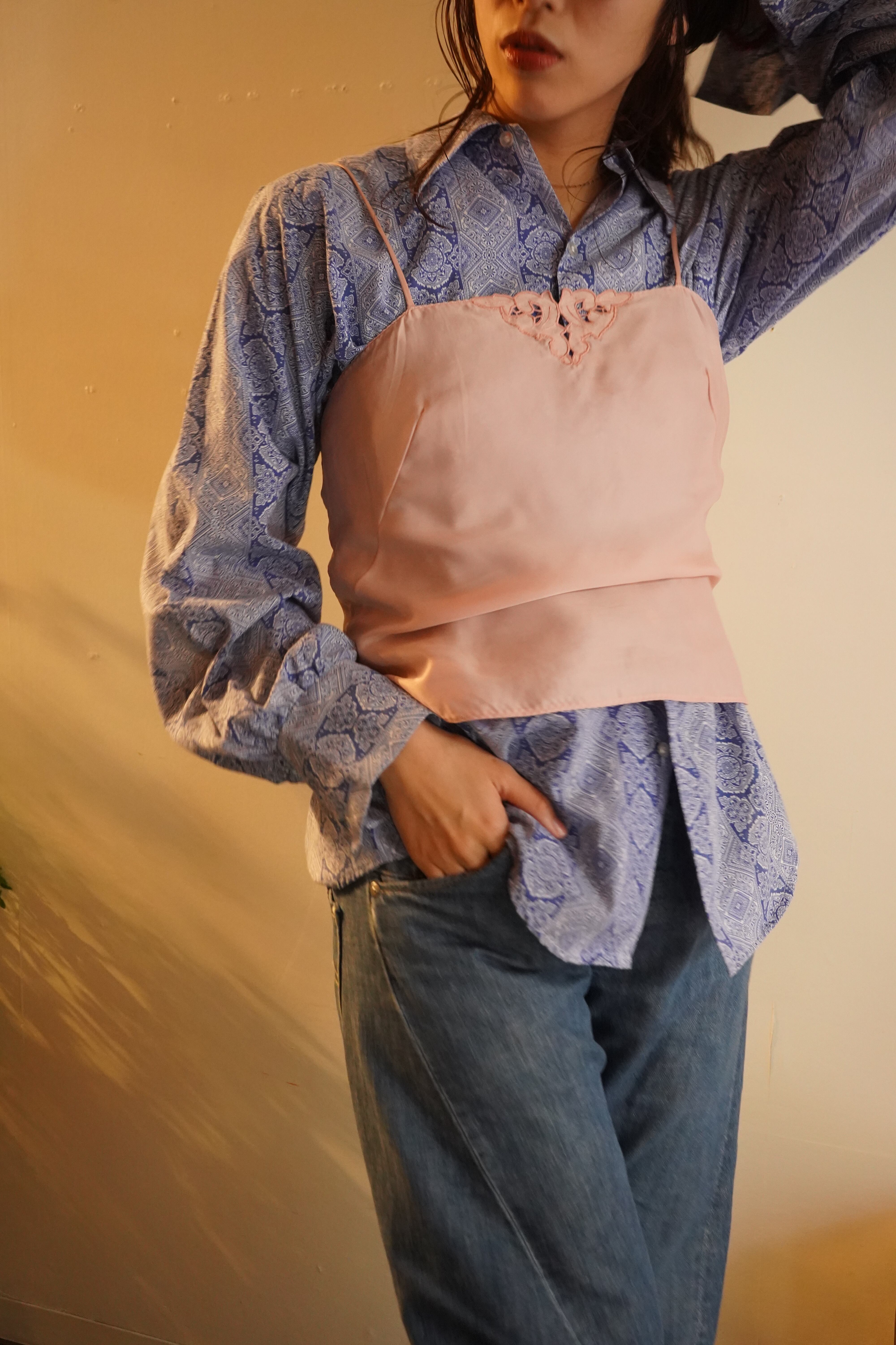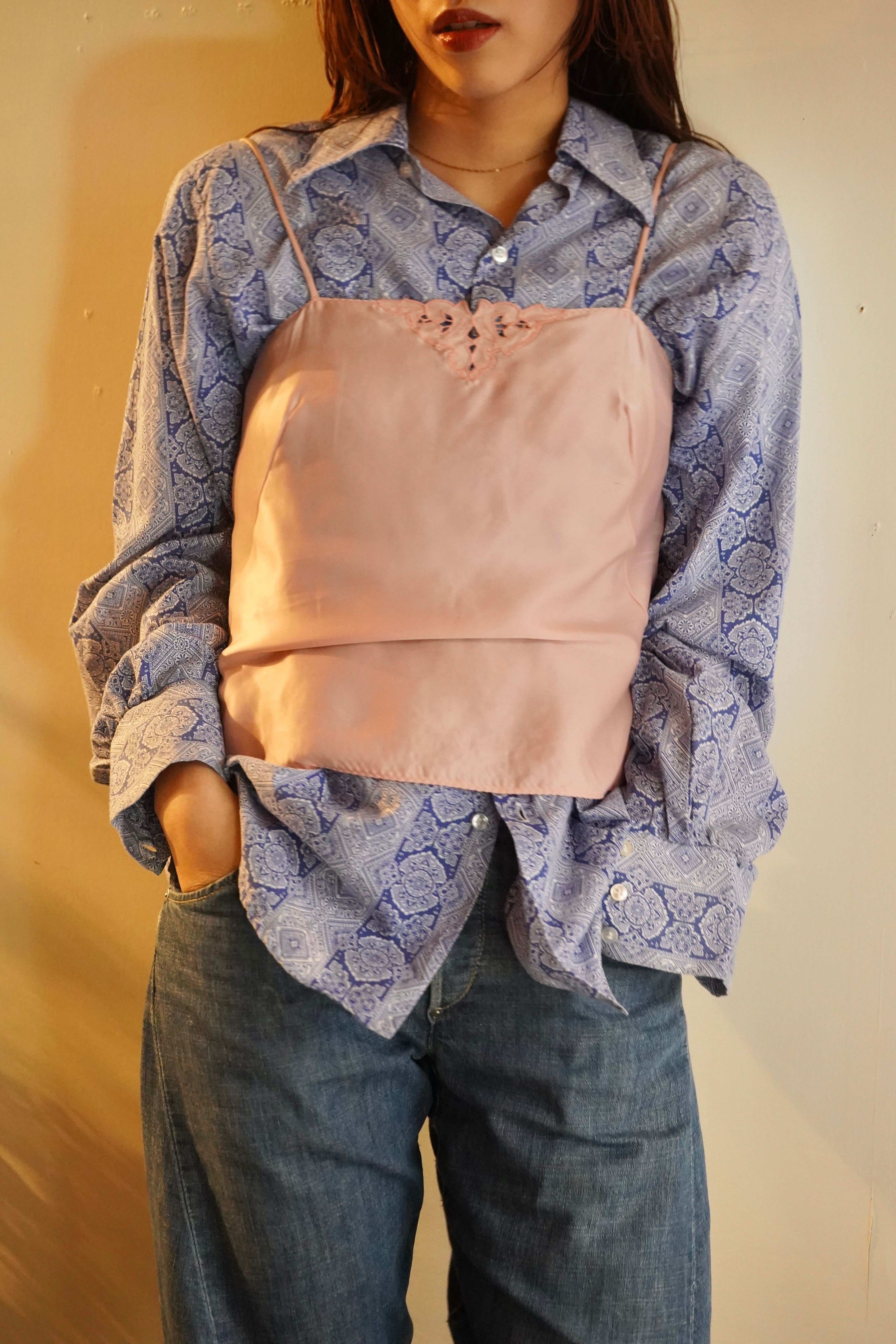 baby pink hand embroidery satin camisole
