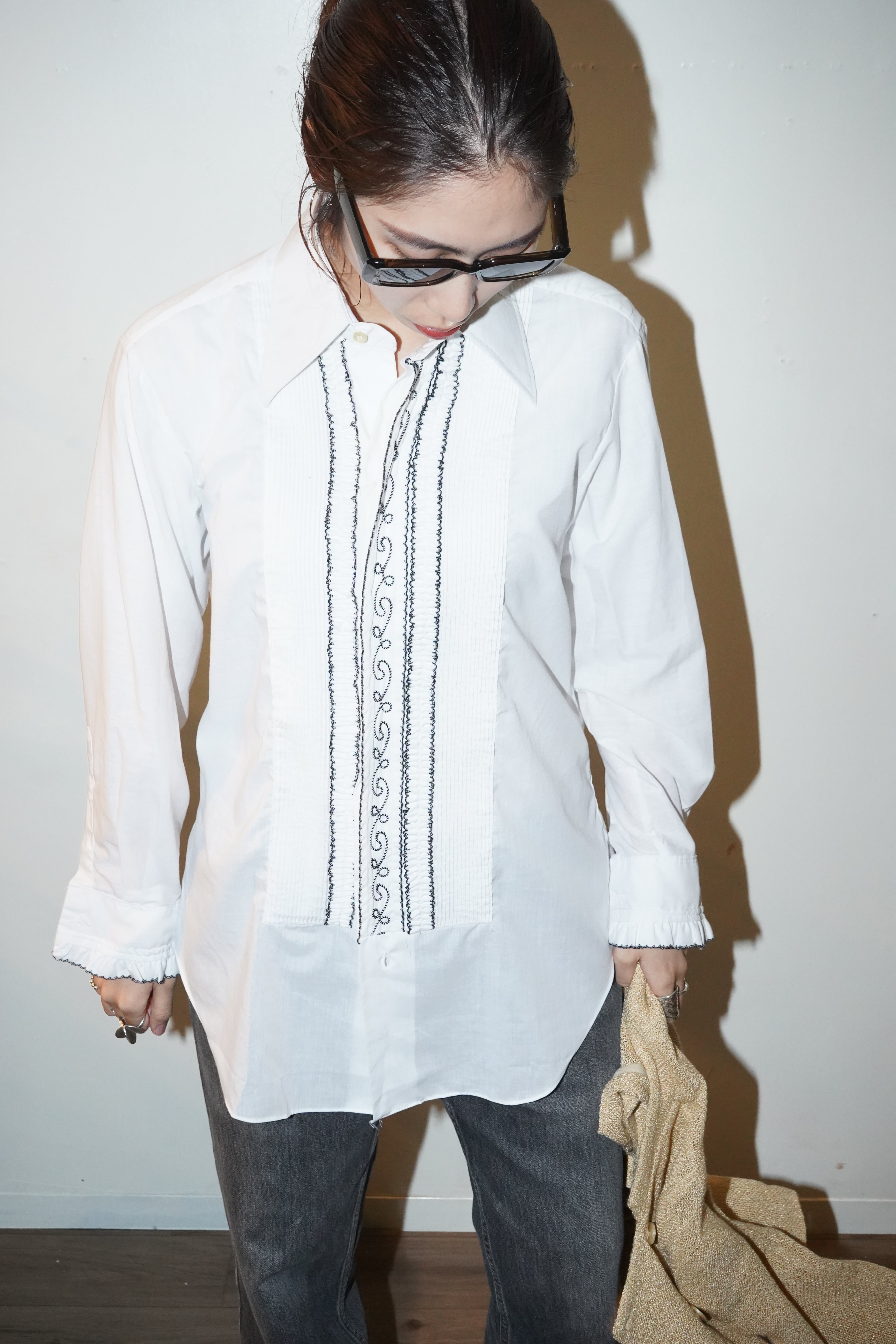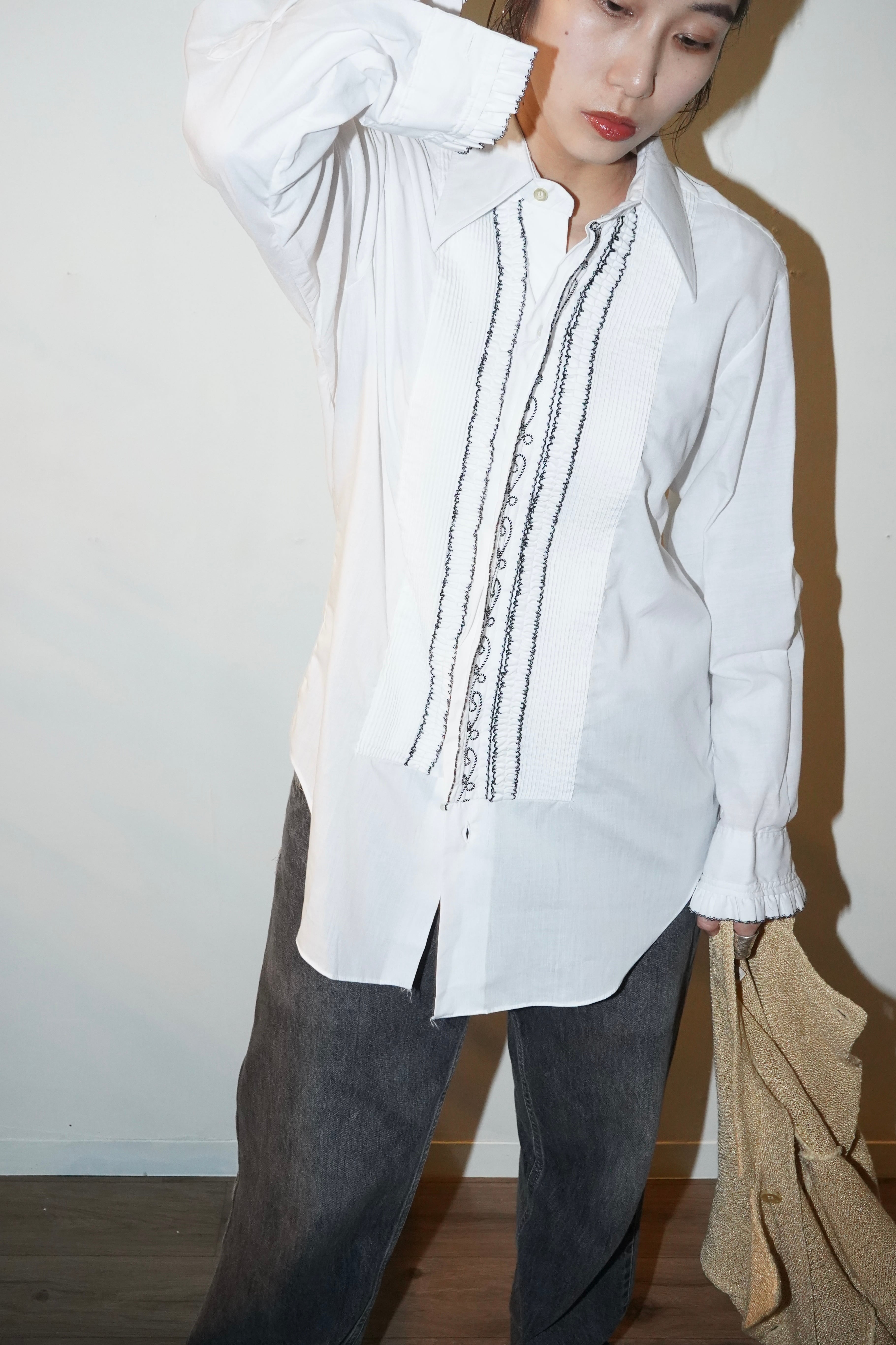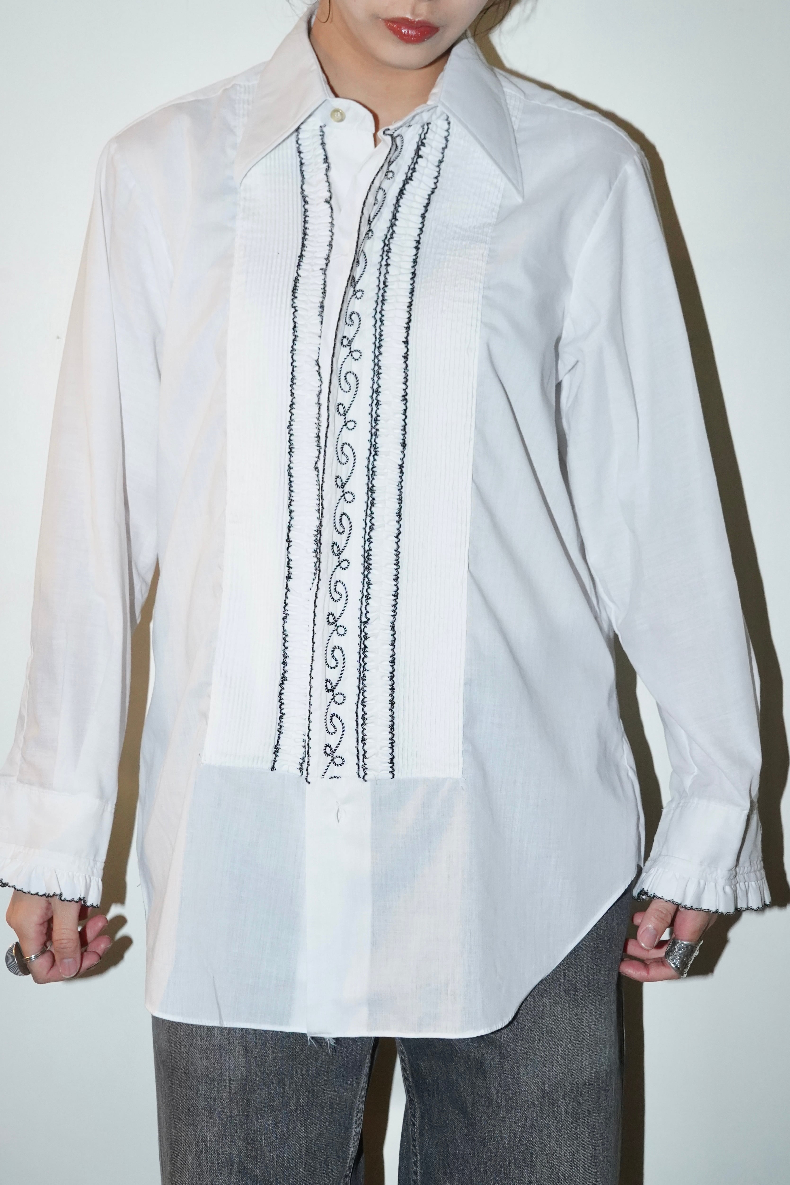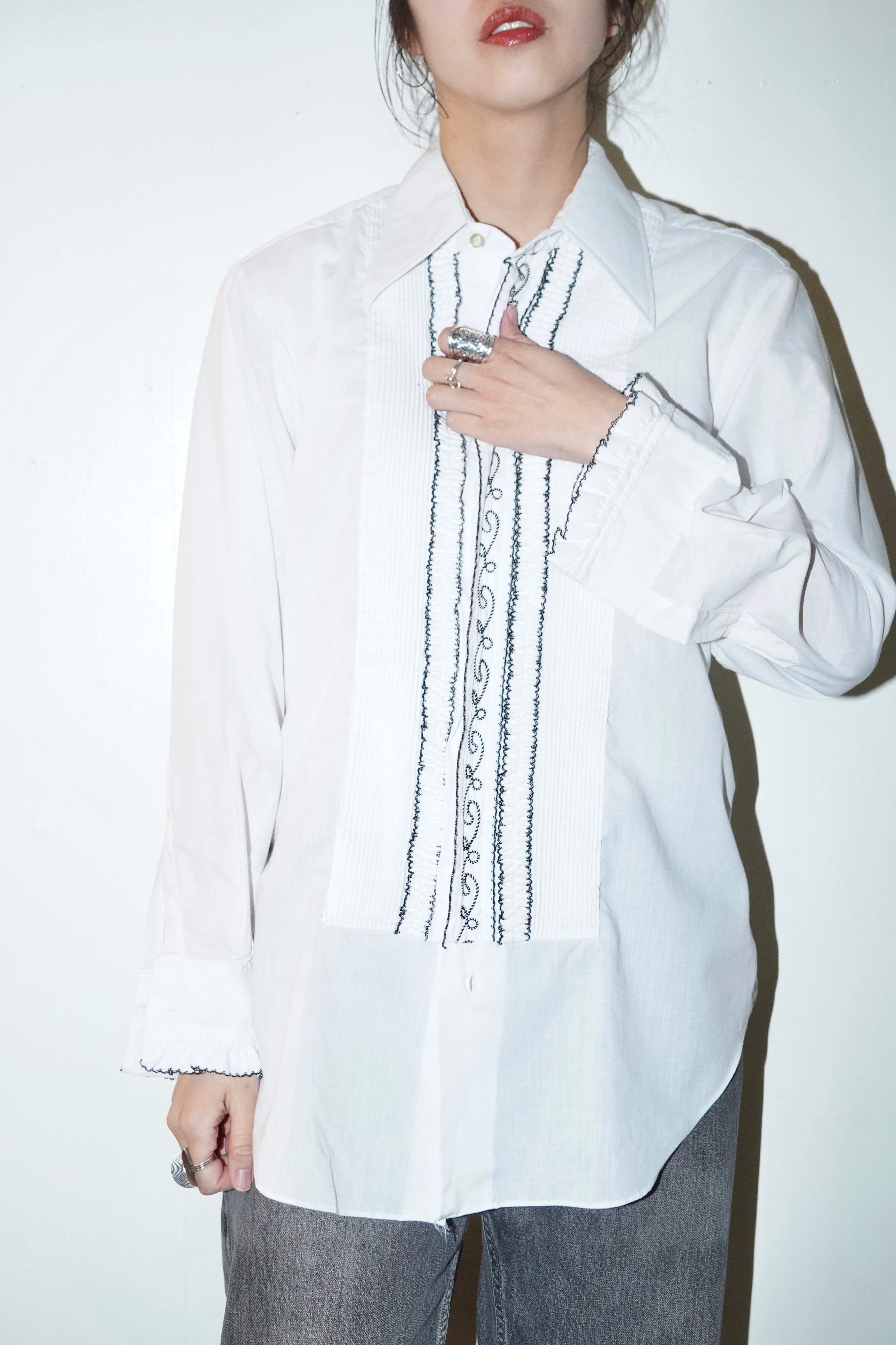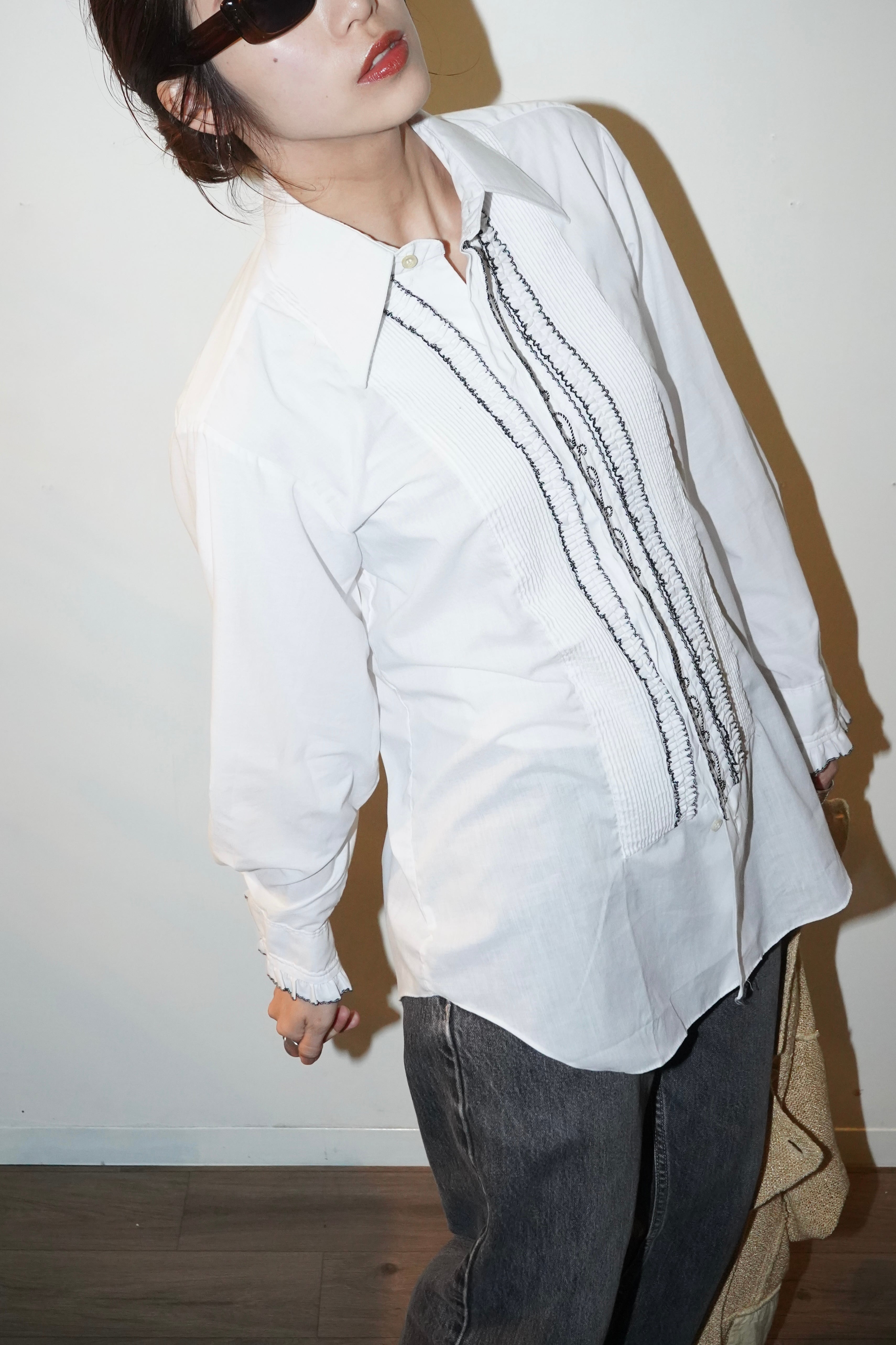 70-80s pintuck frill blouse