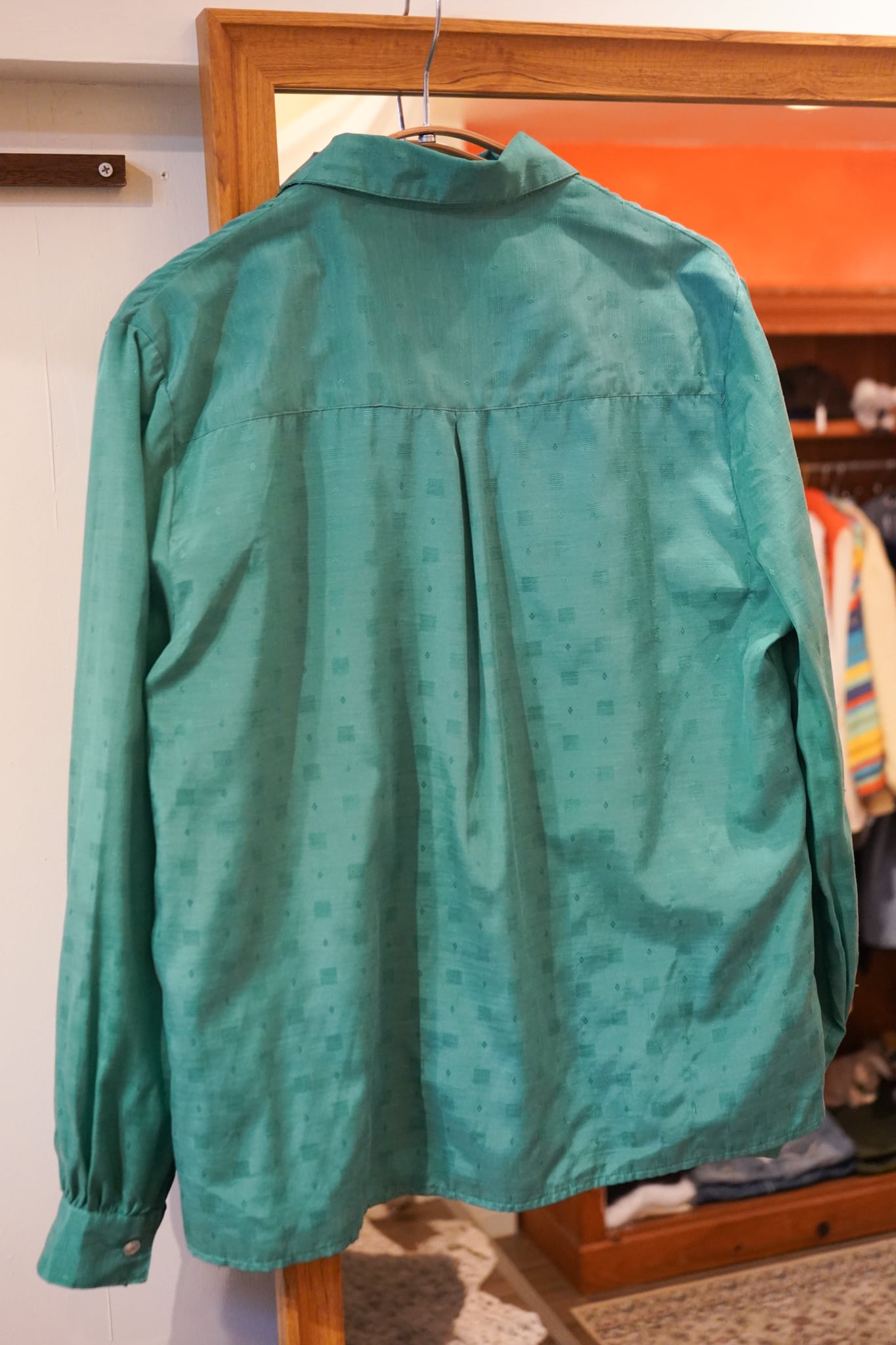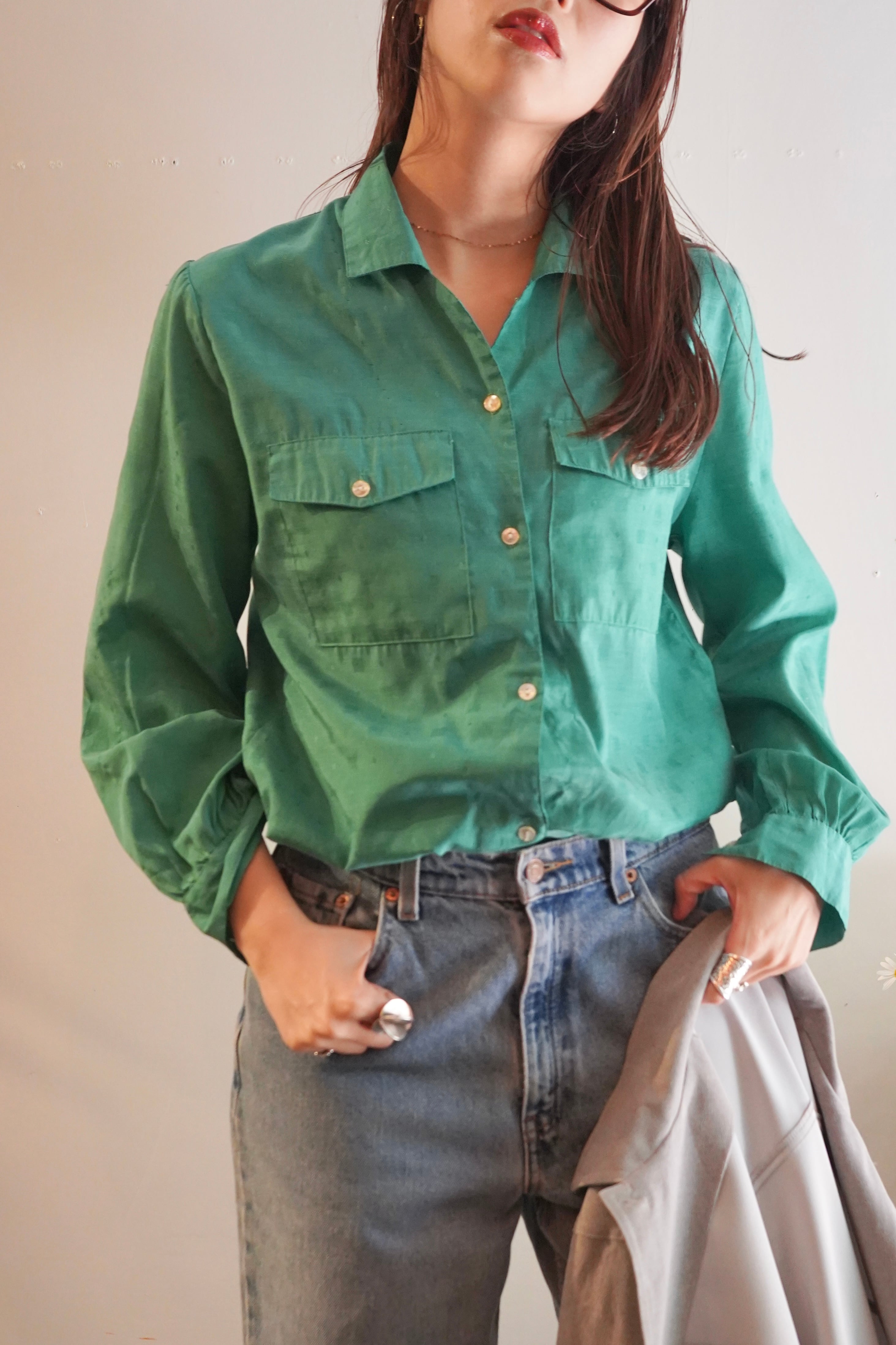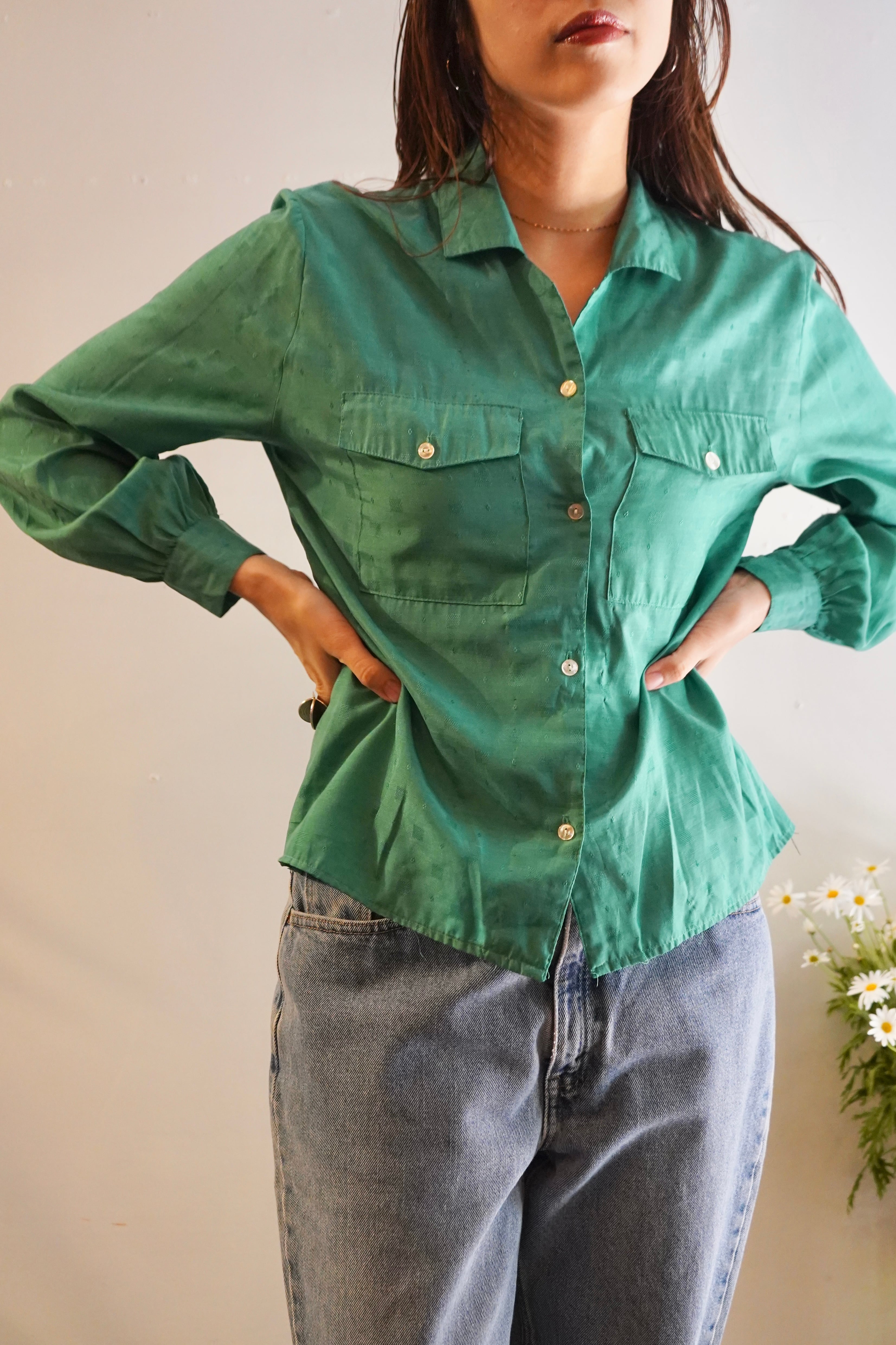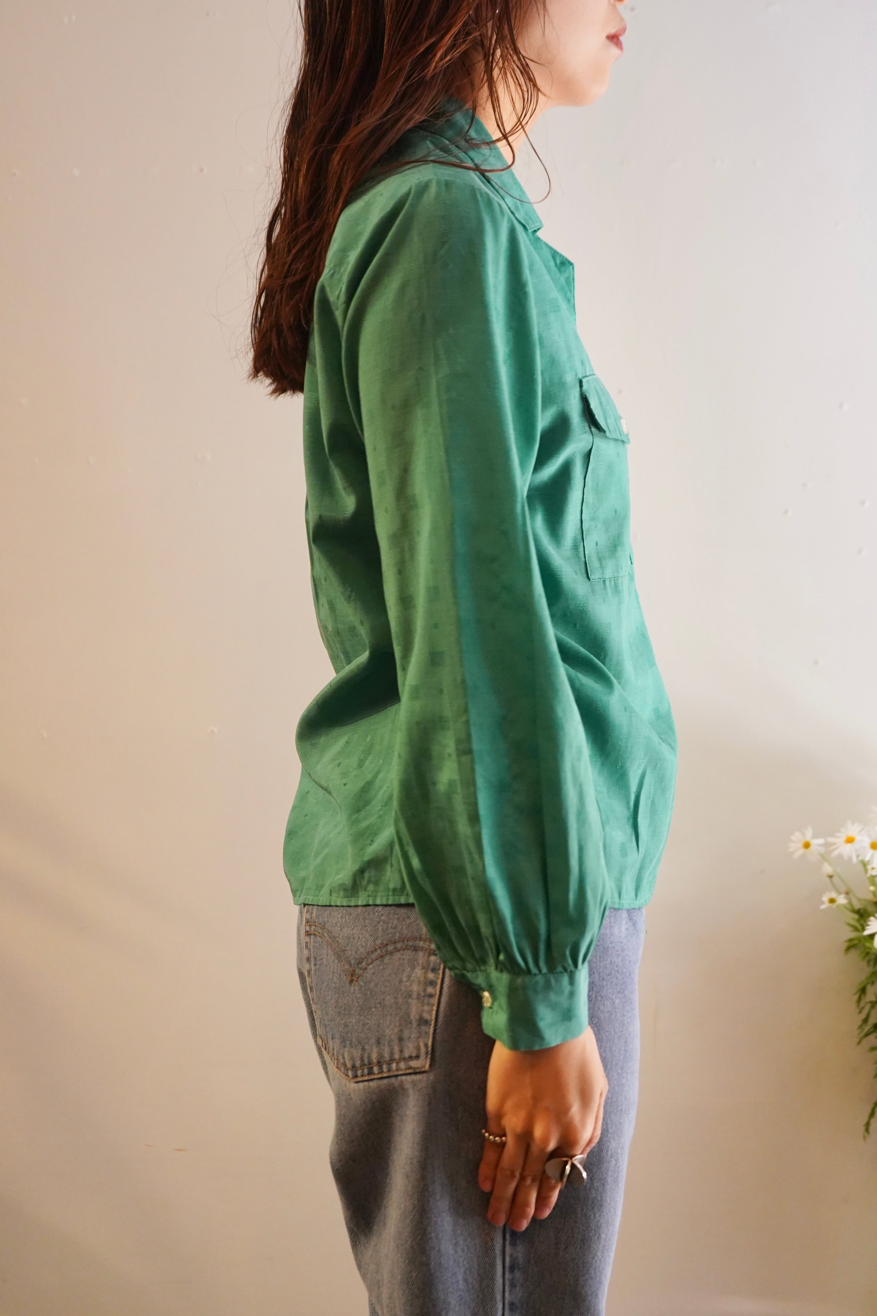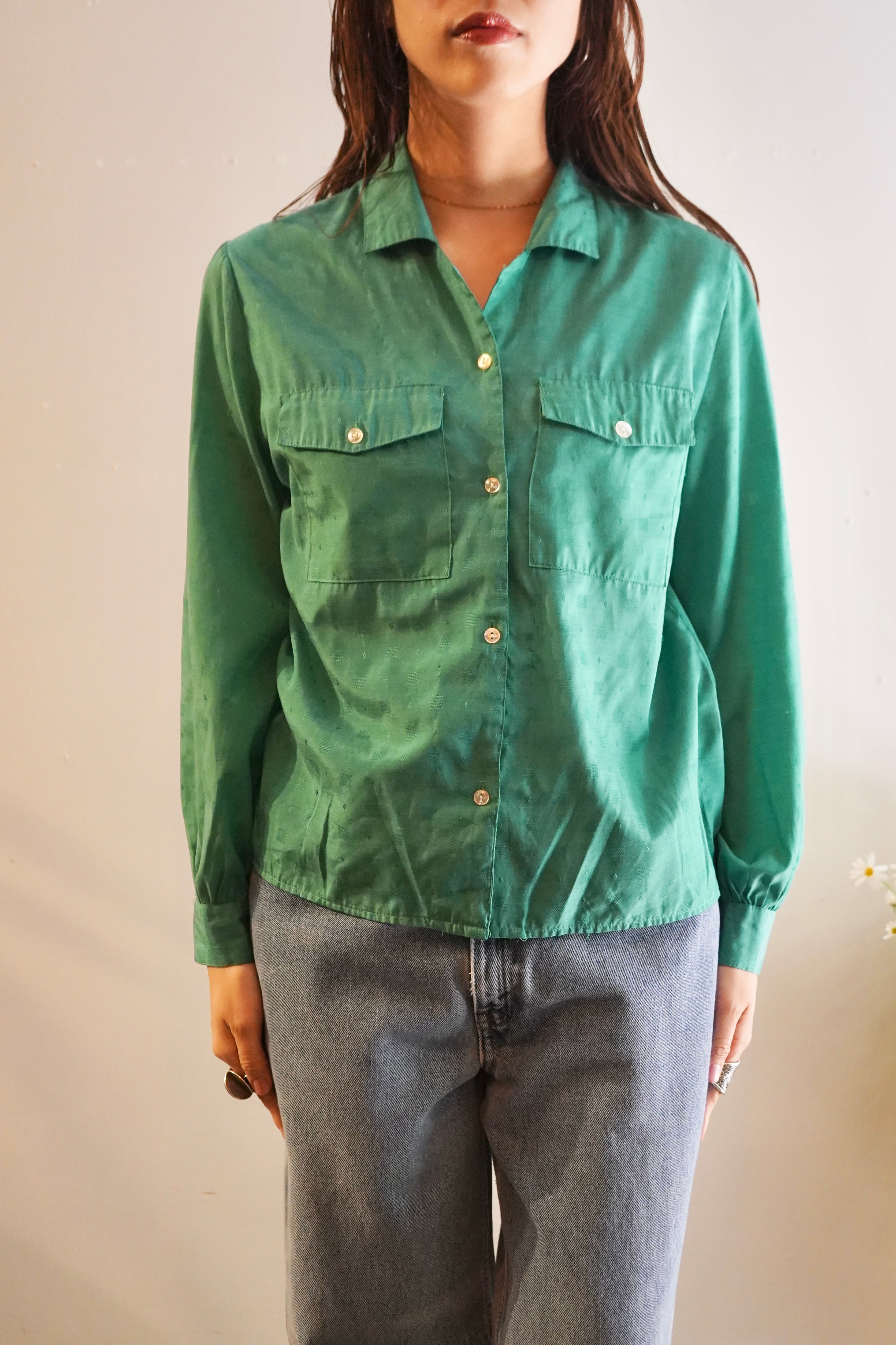 green open collar shirt