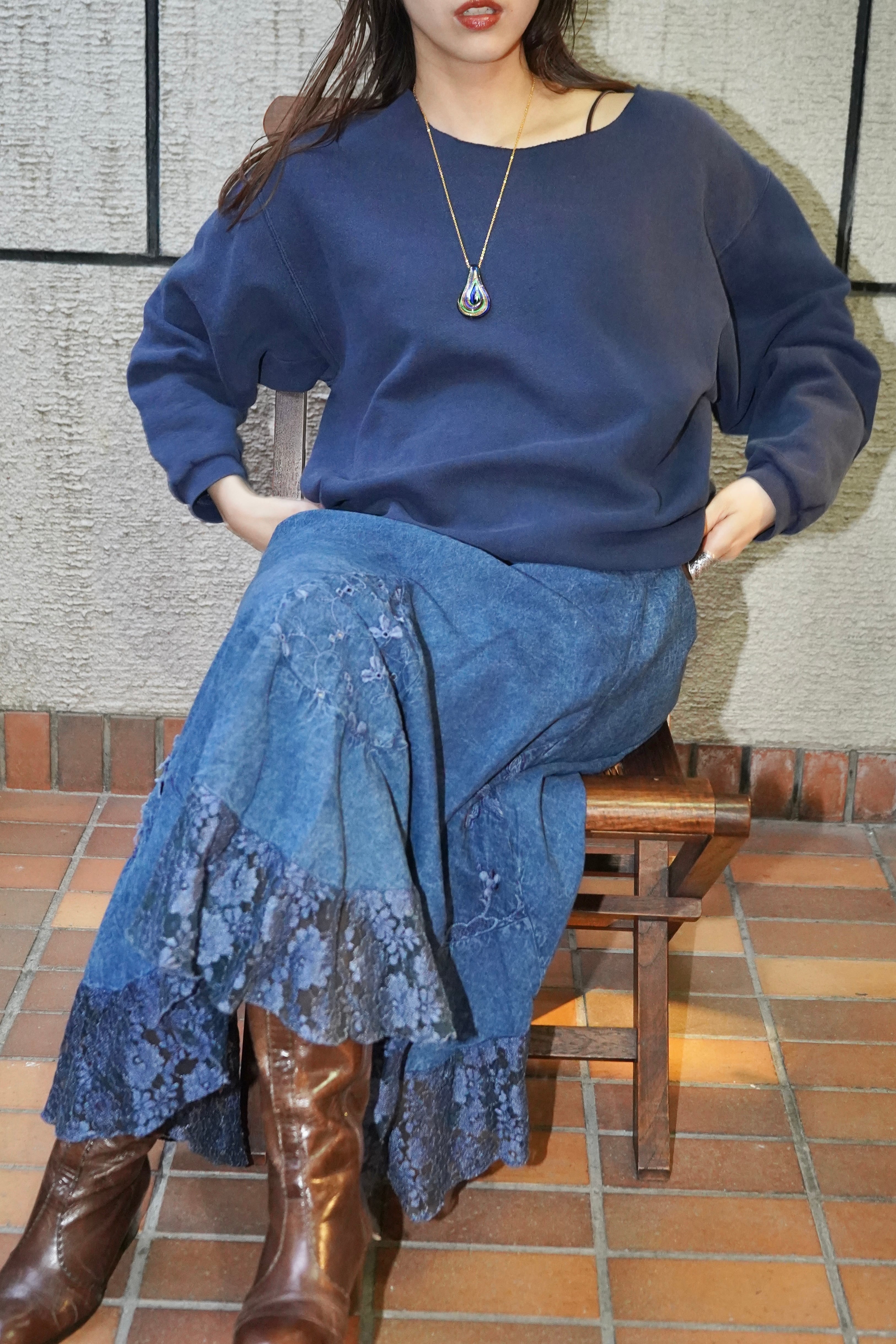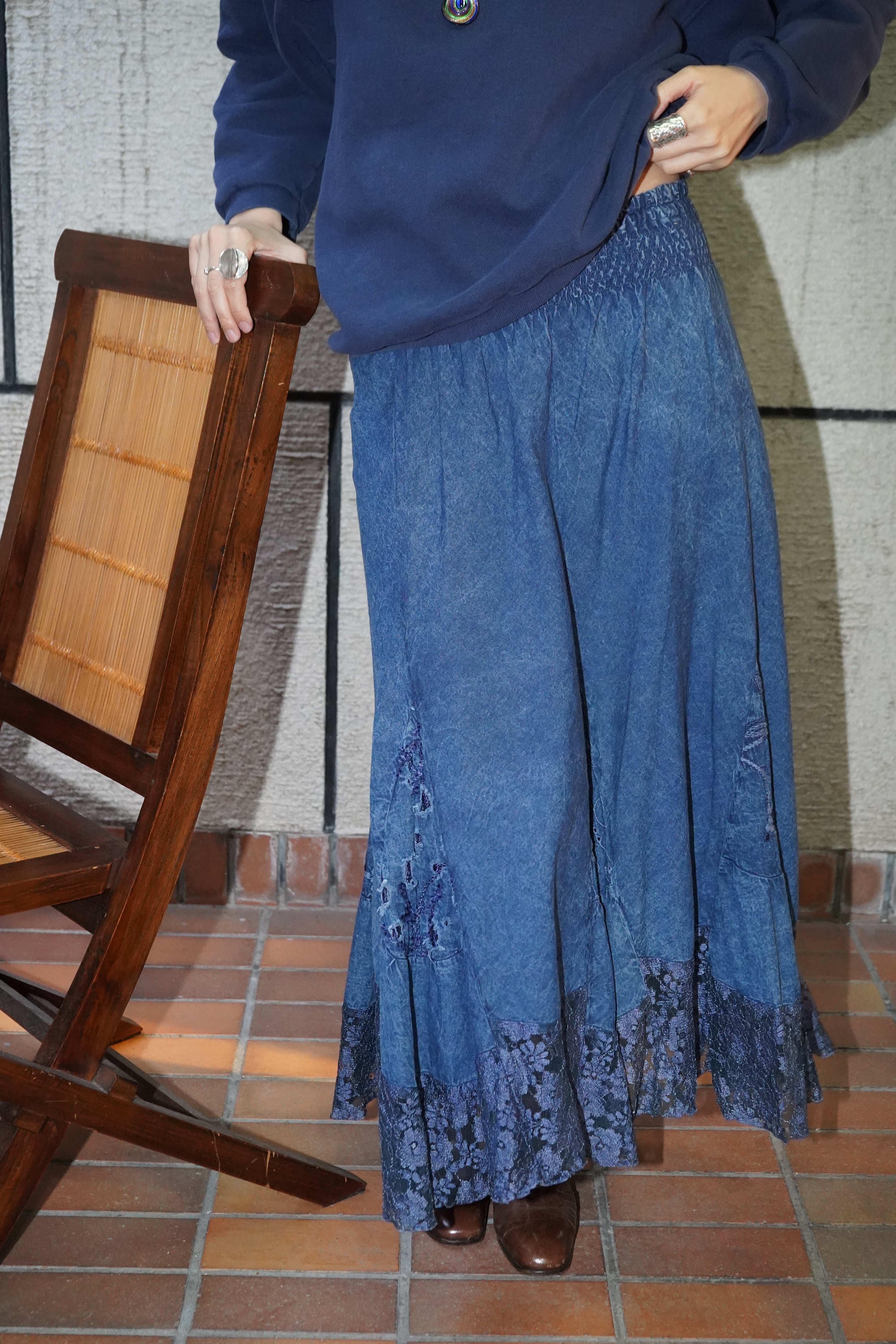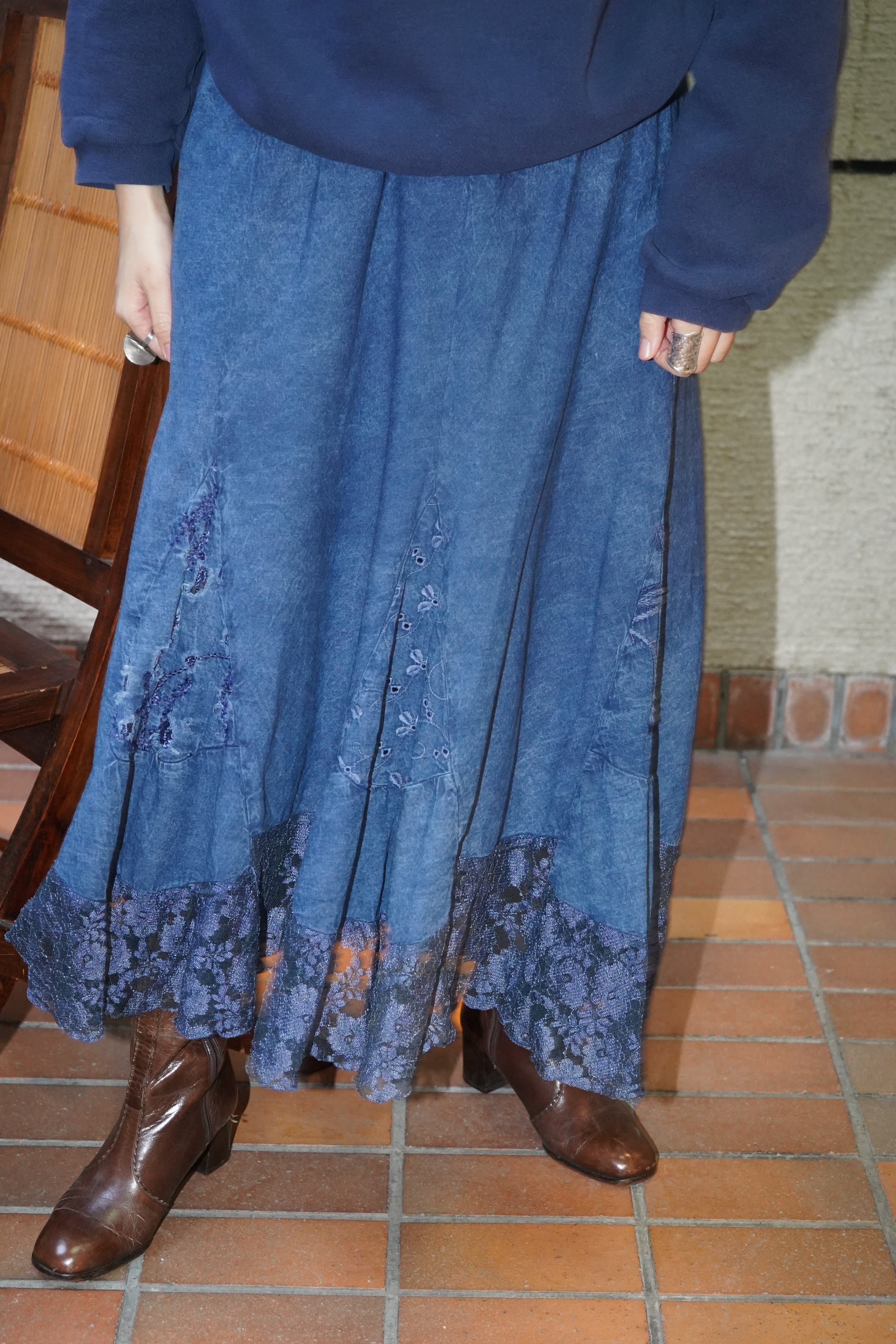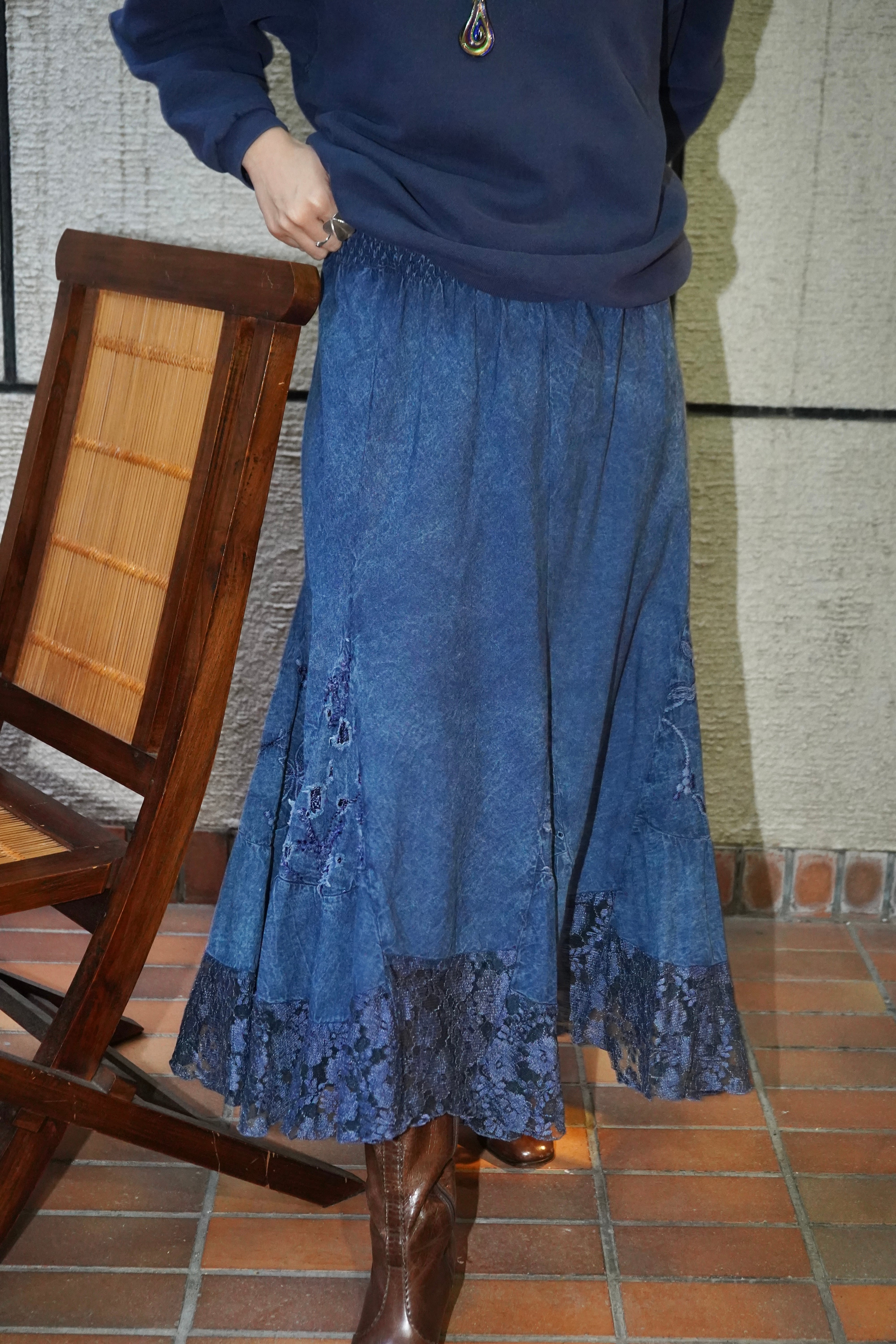 indigo lace skirt