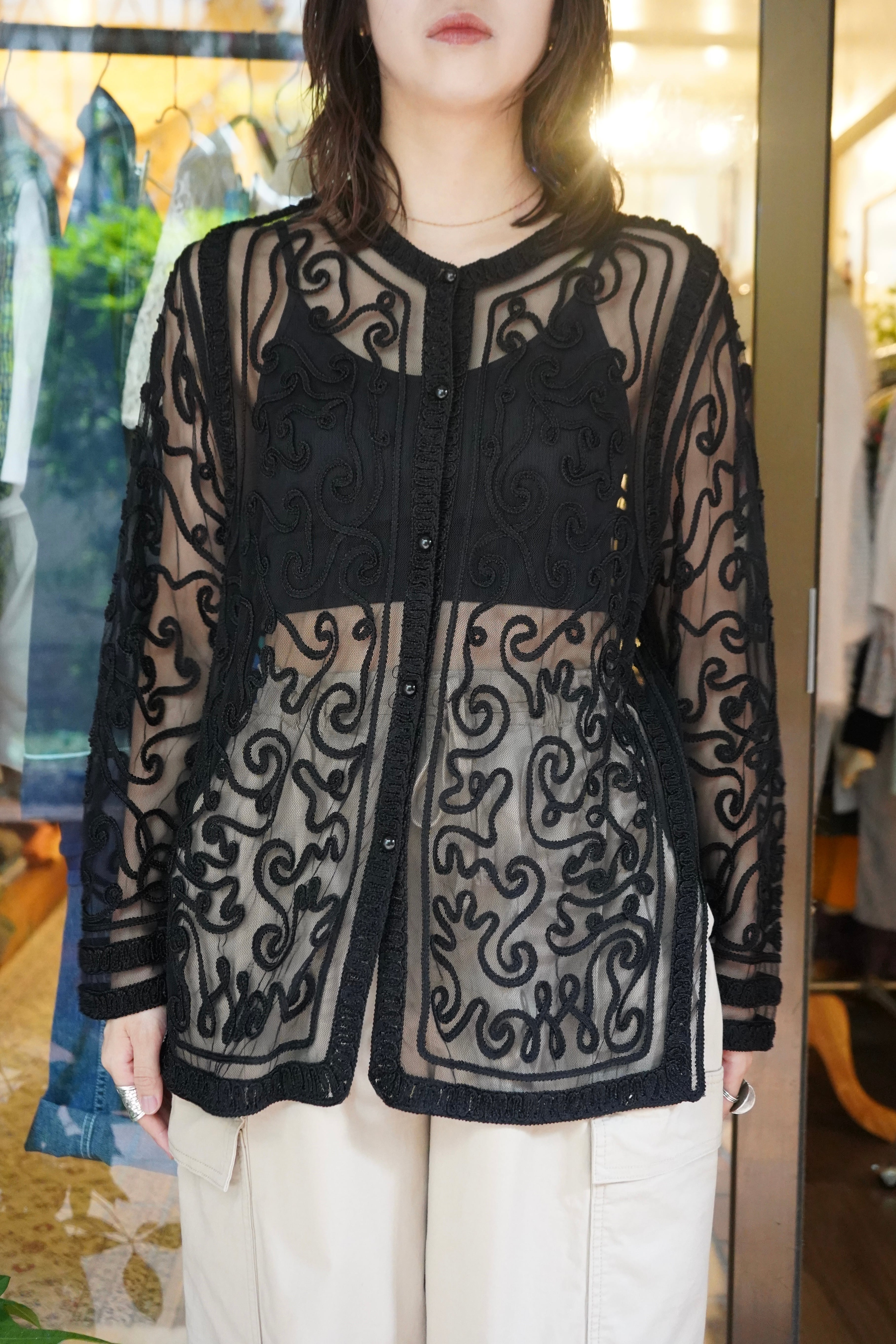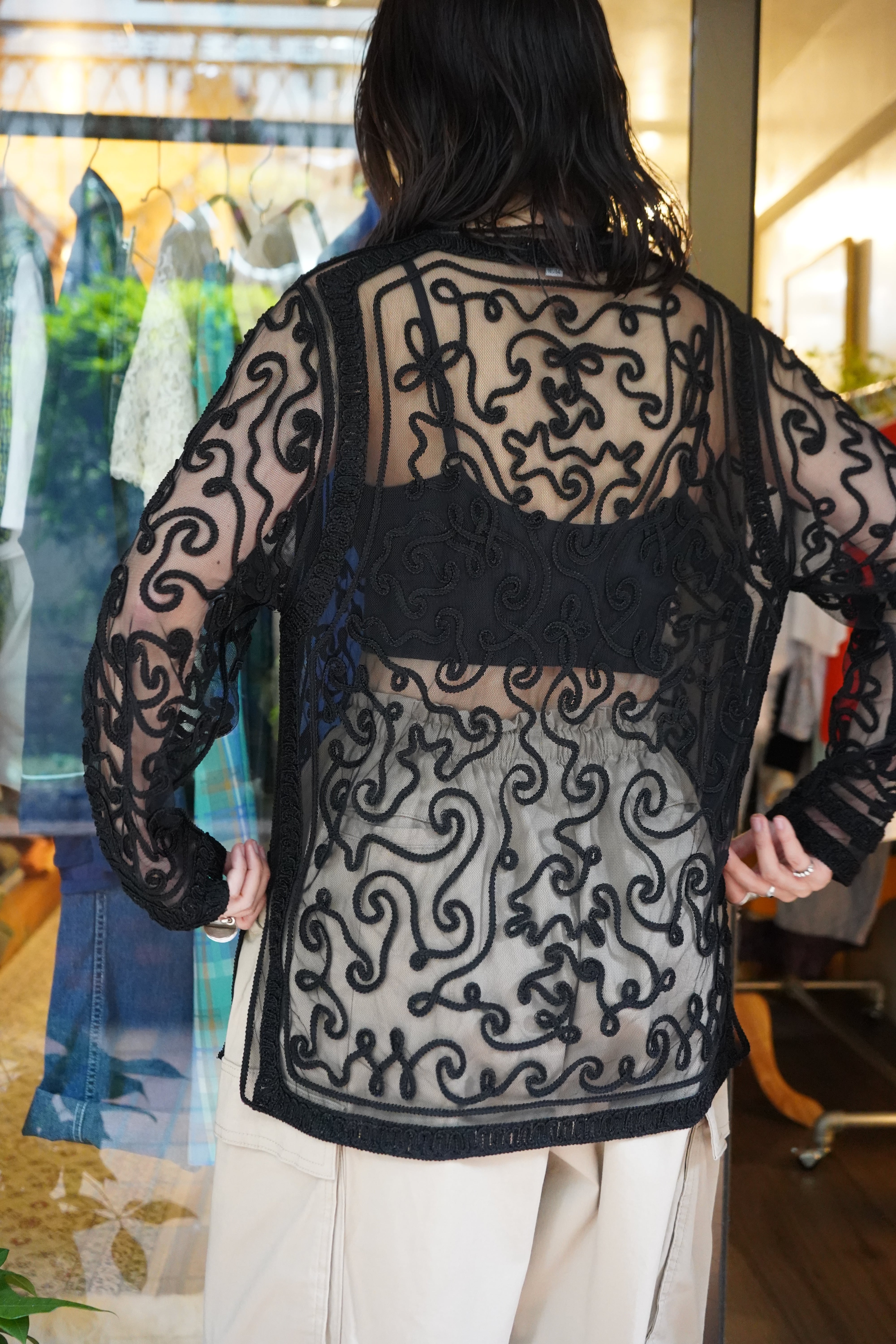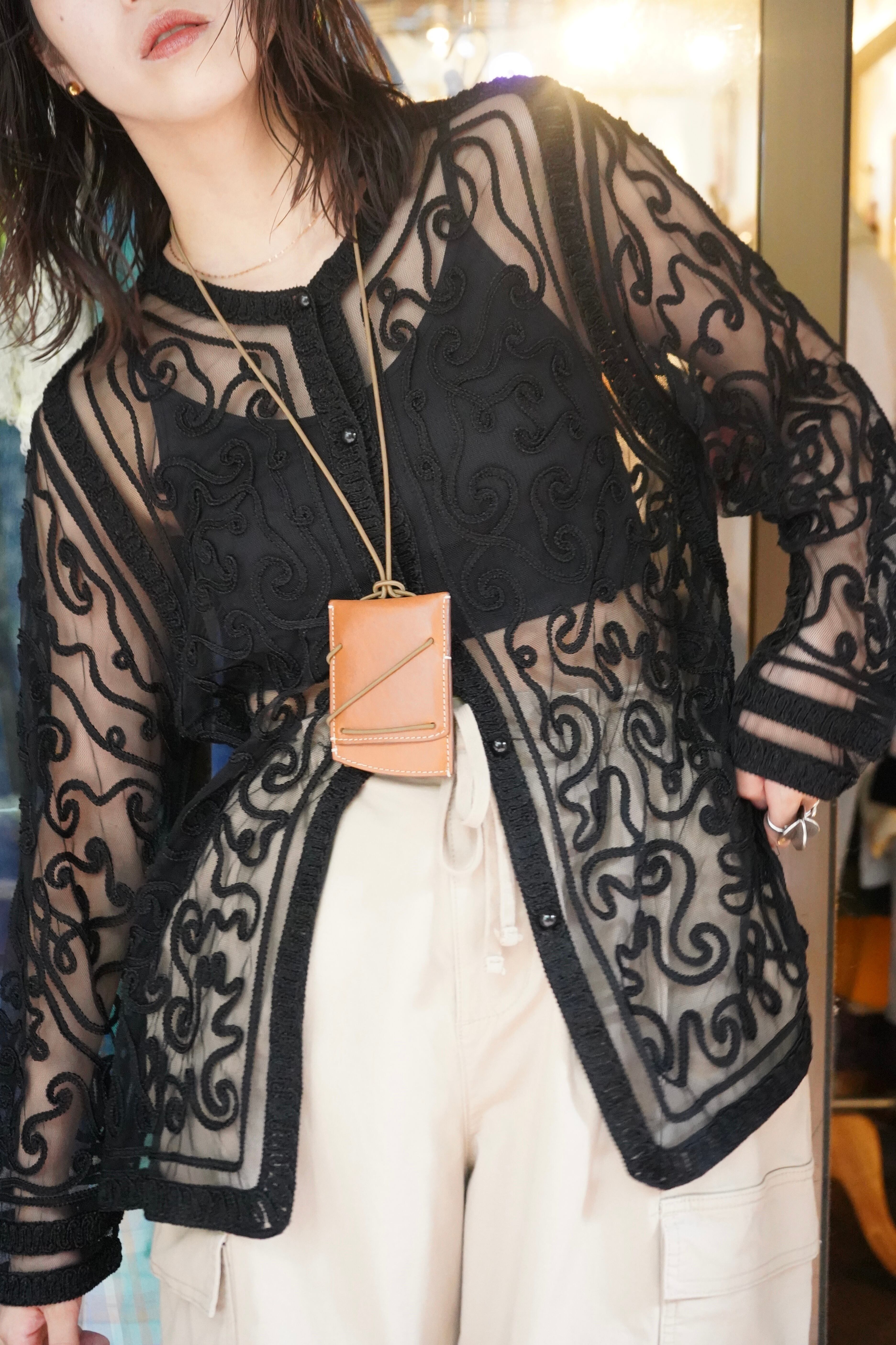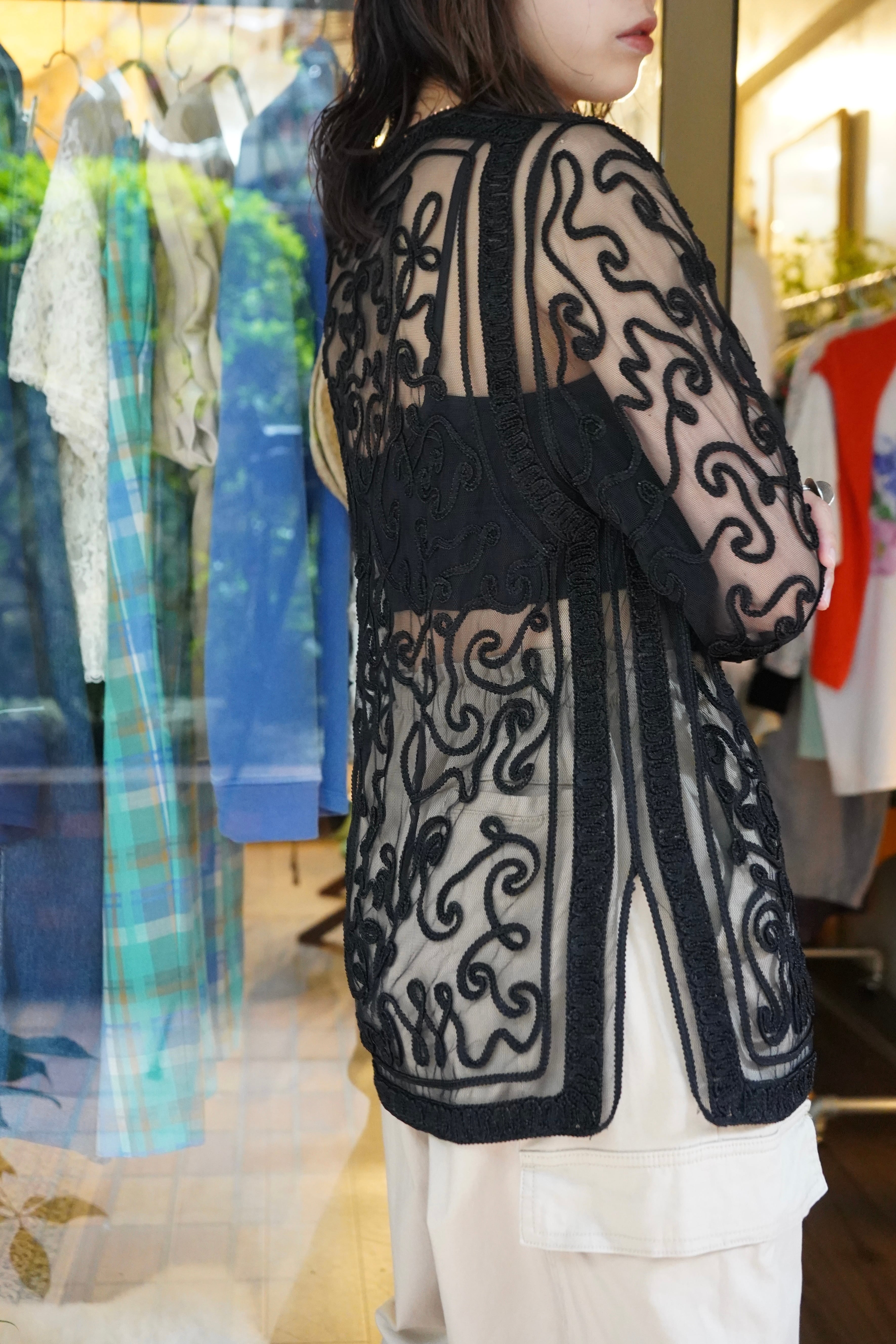 black tape design tulle cardigan