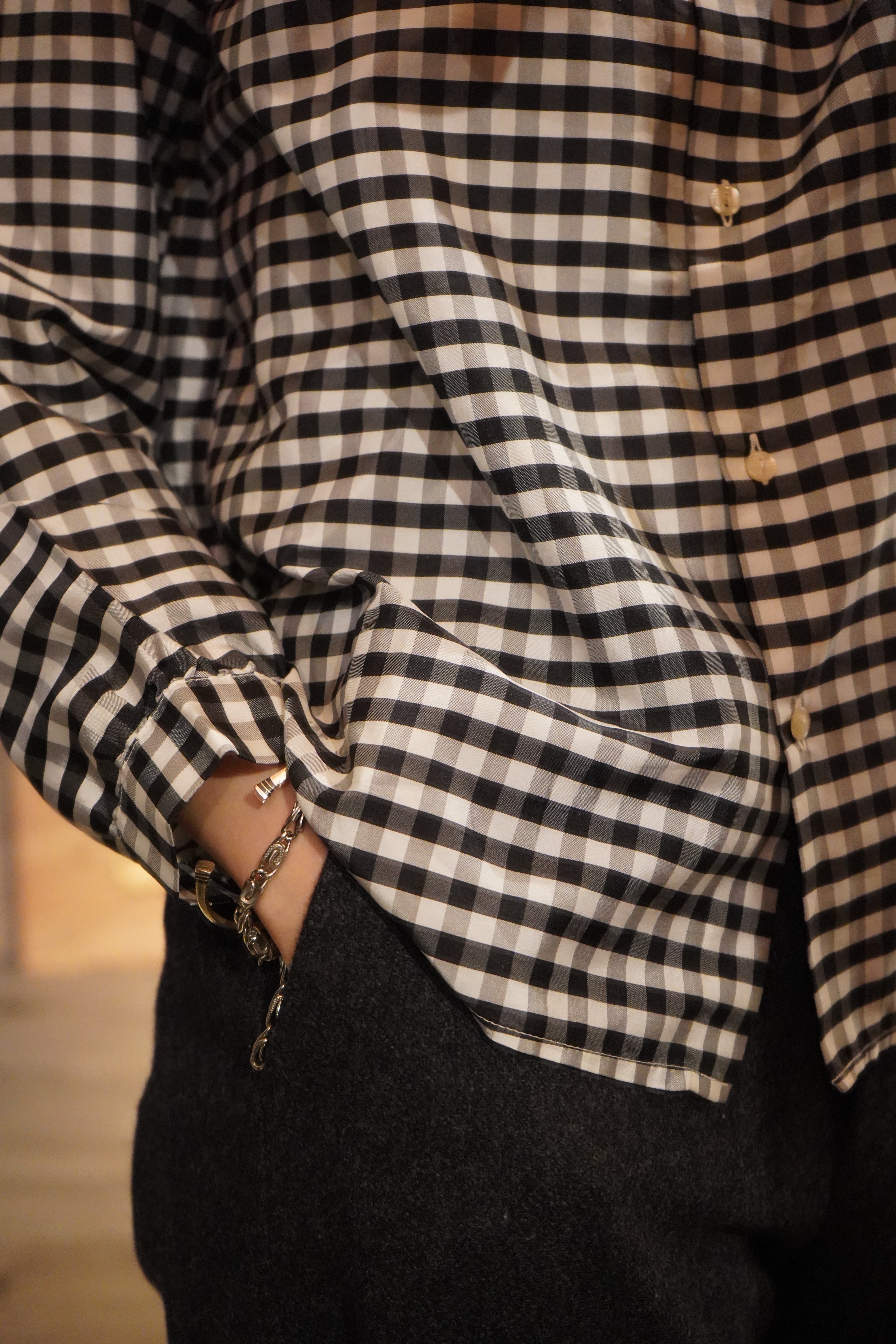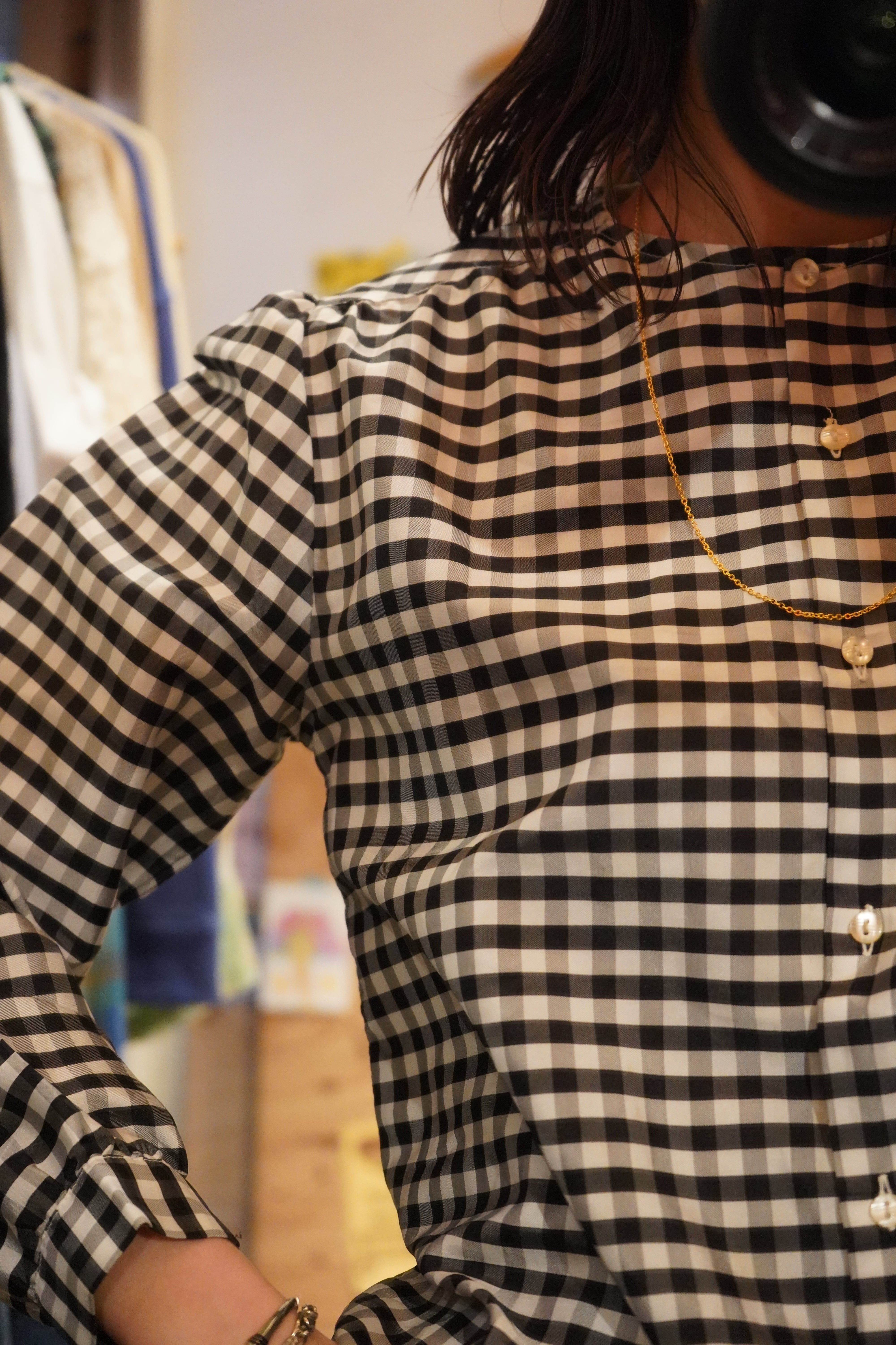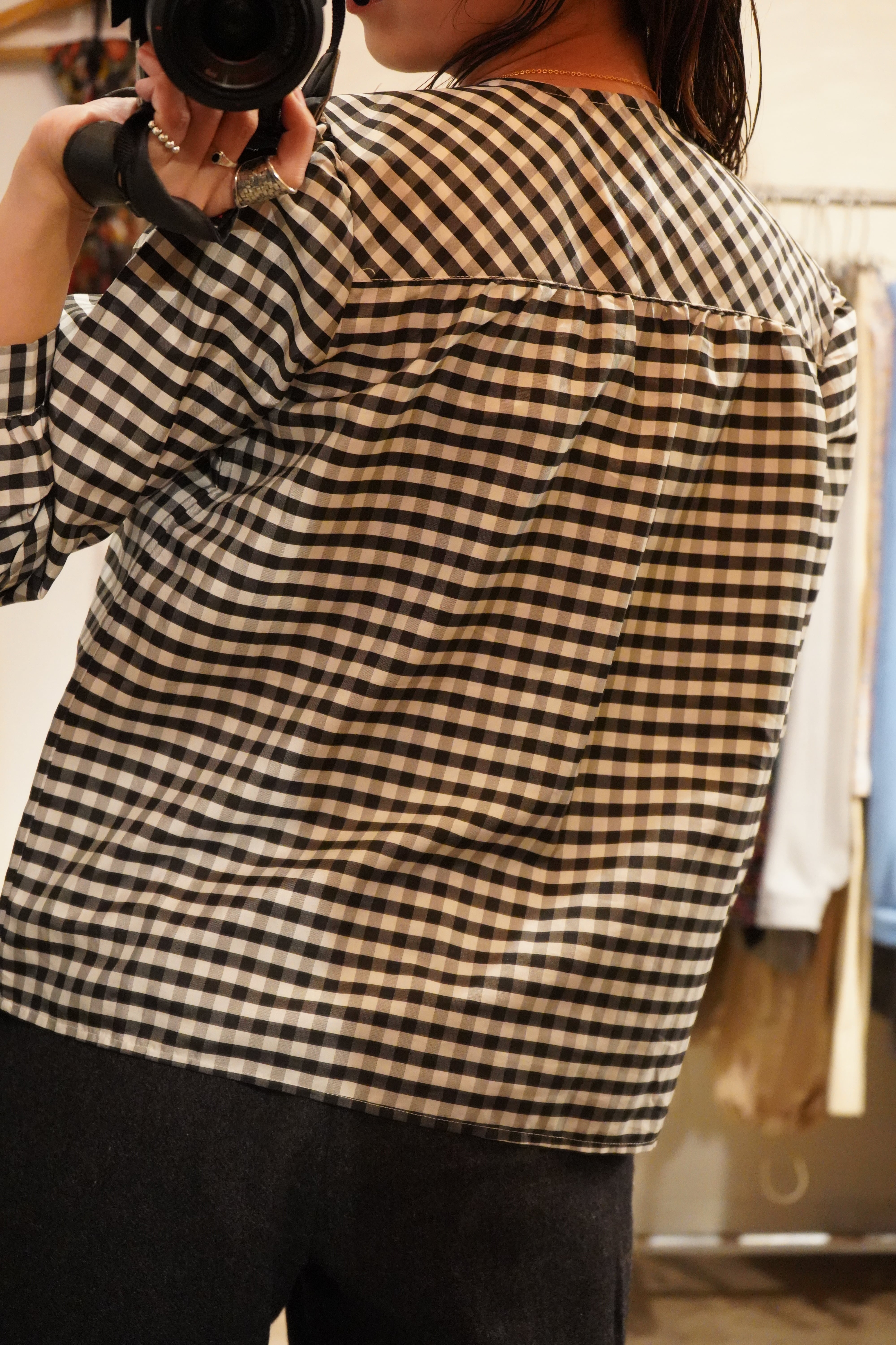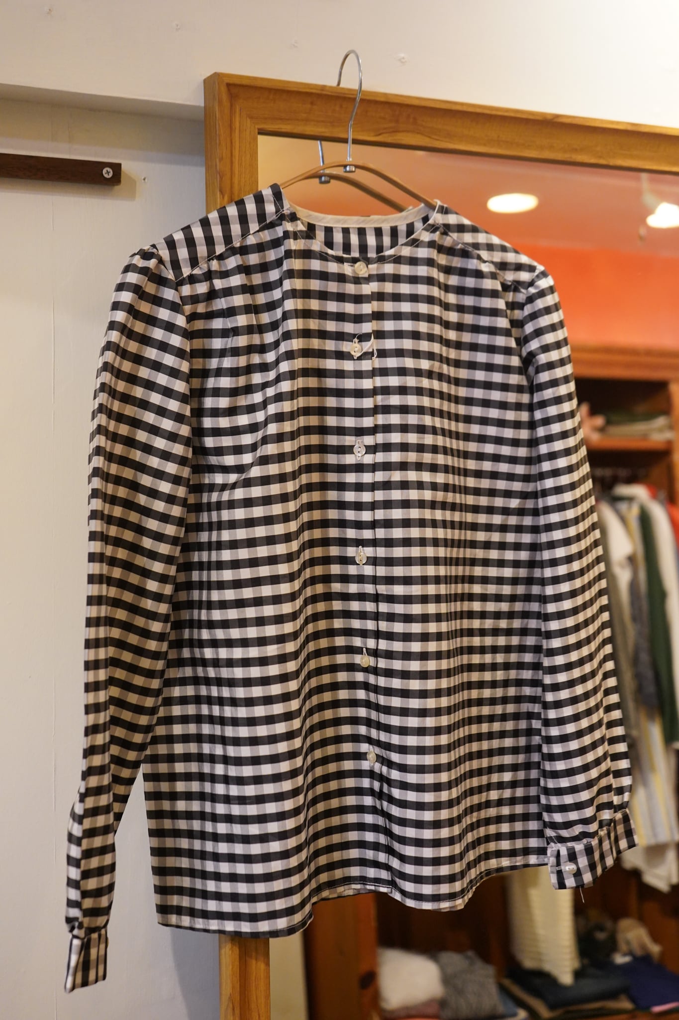 plaid no collar blouse
