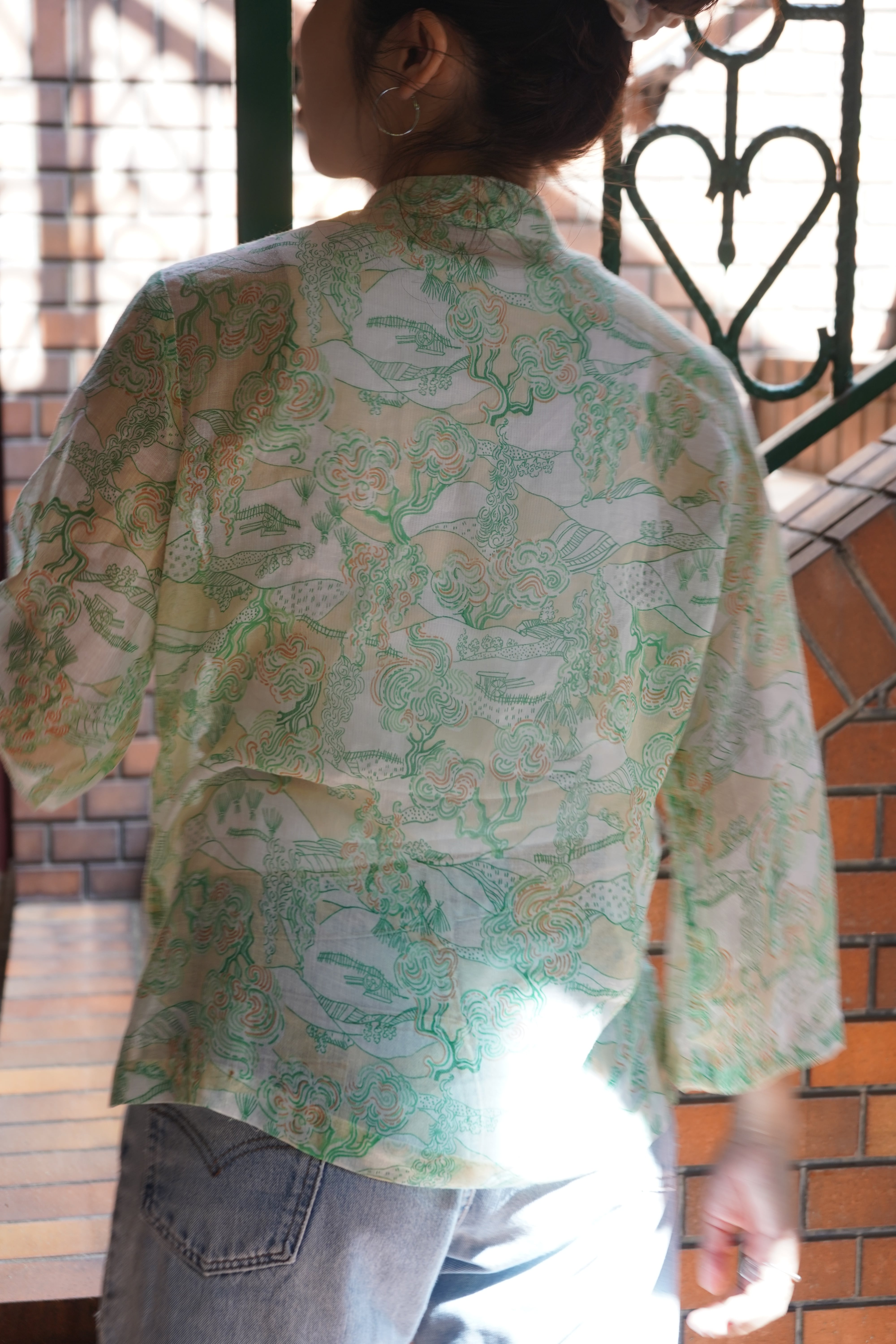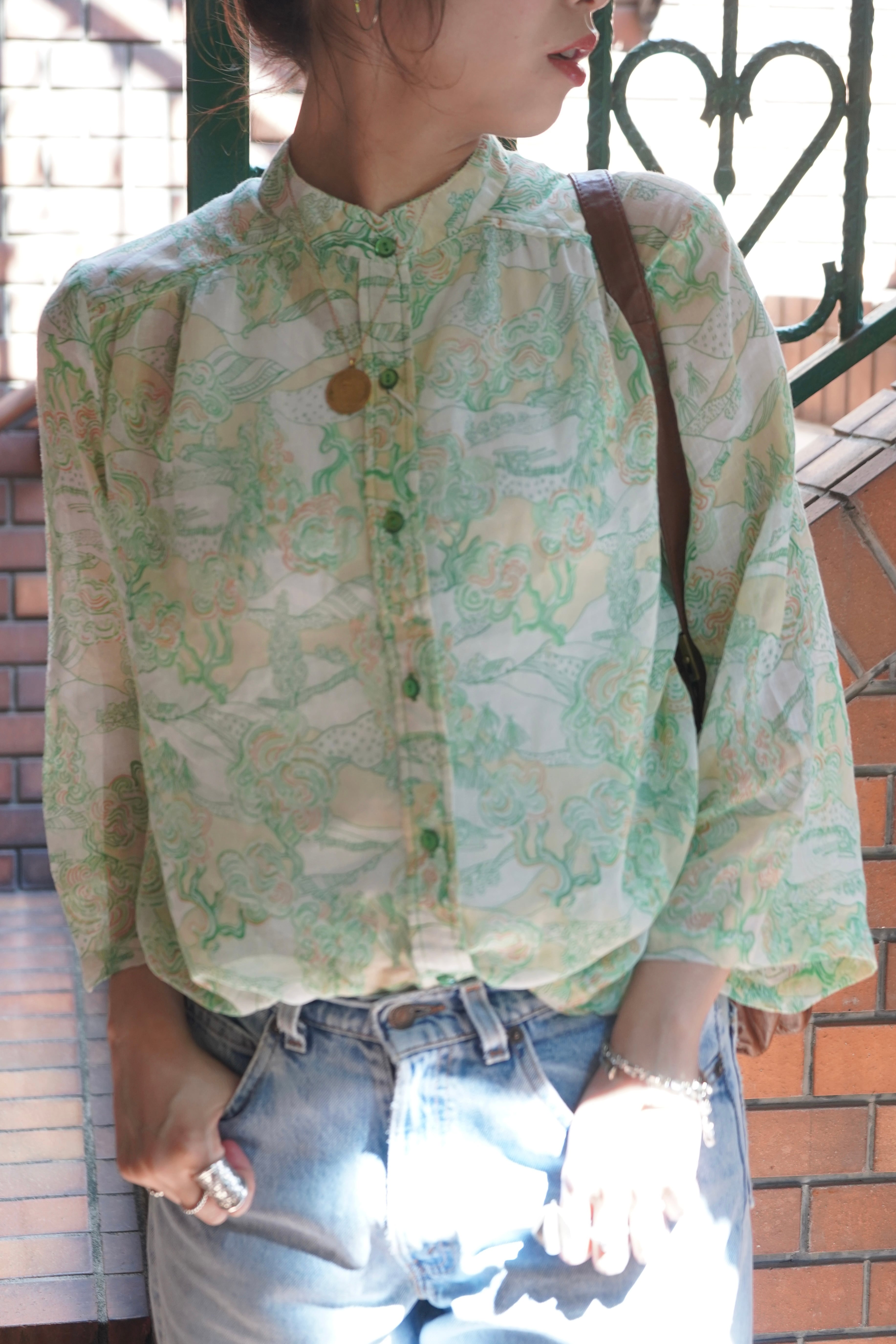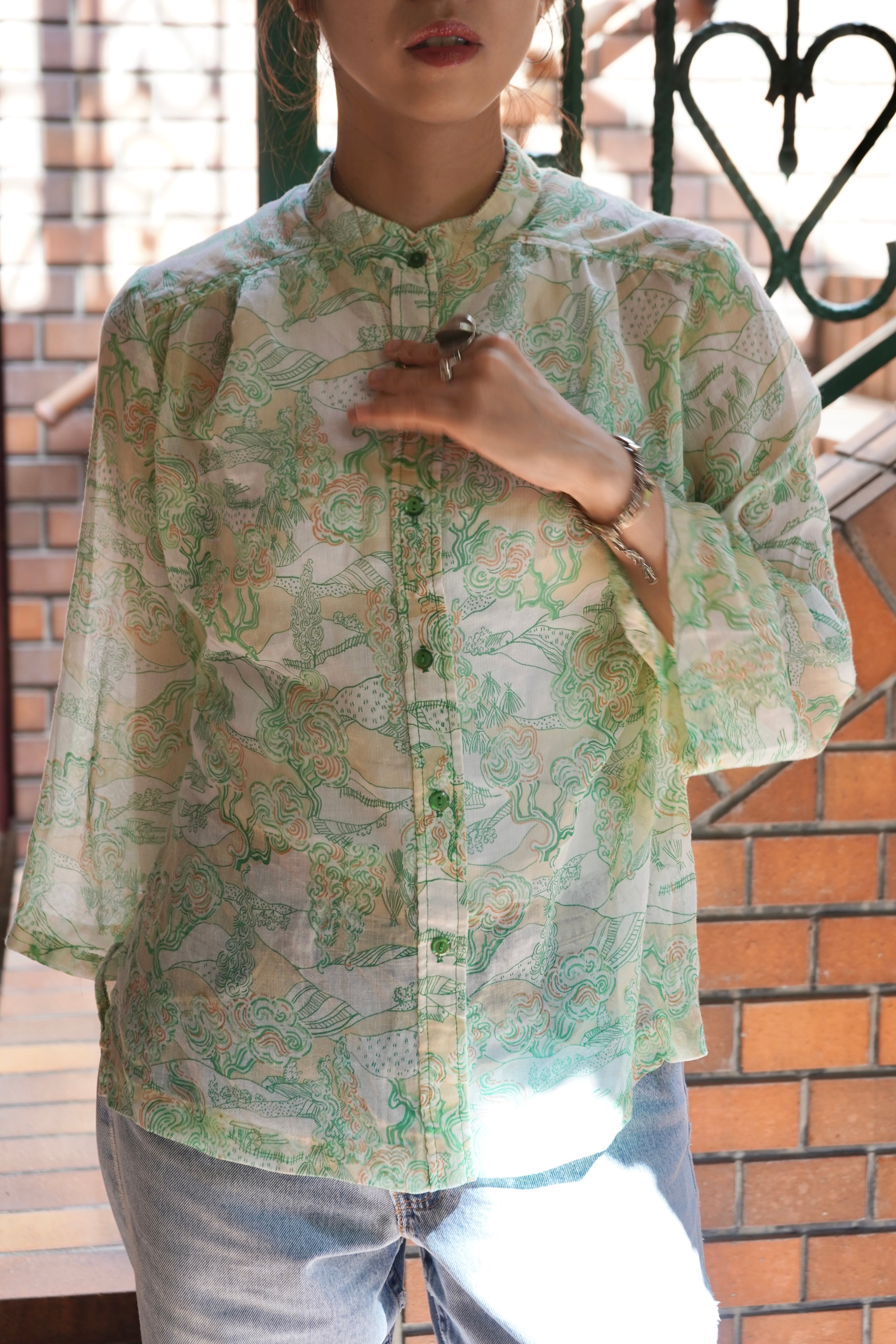 70s pattern sheer blouse