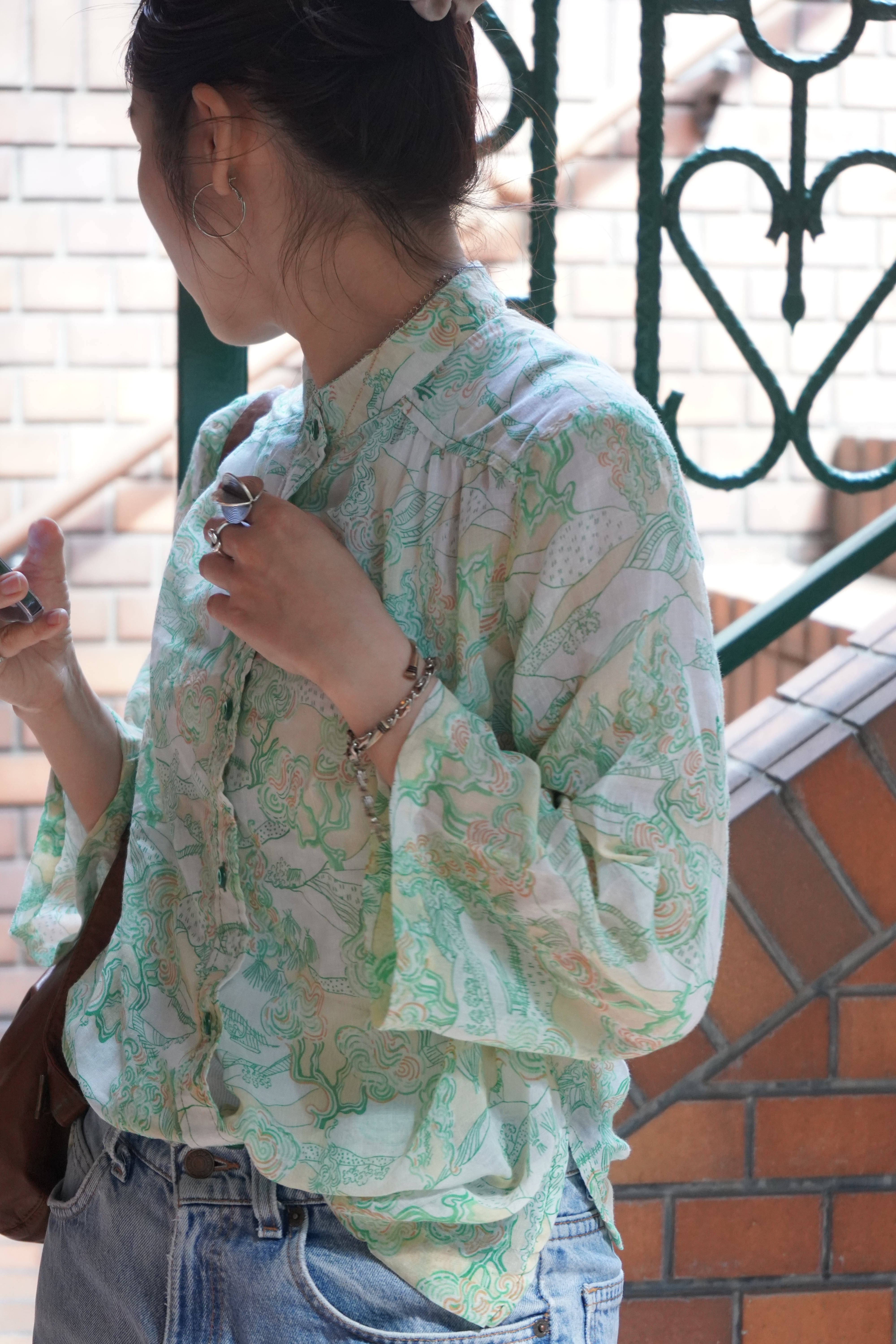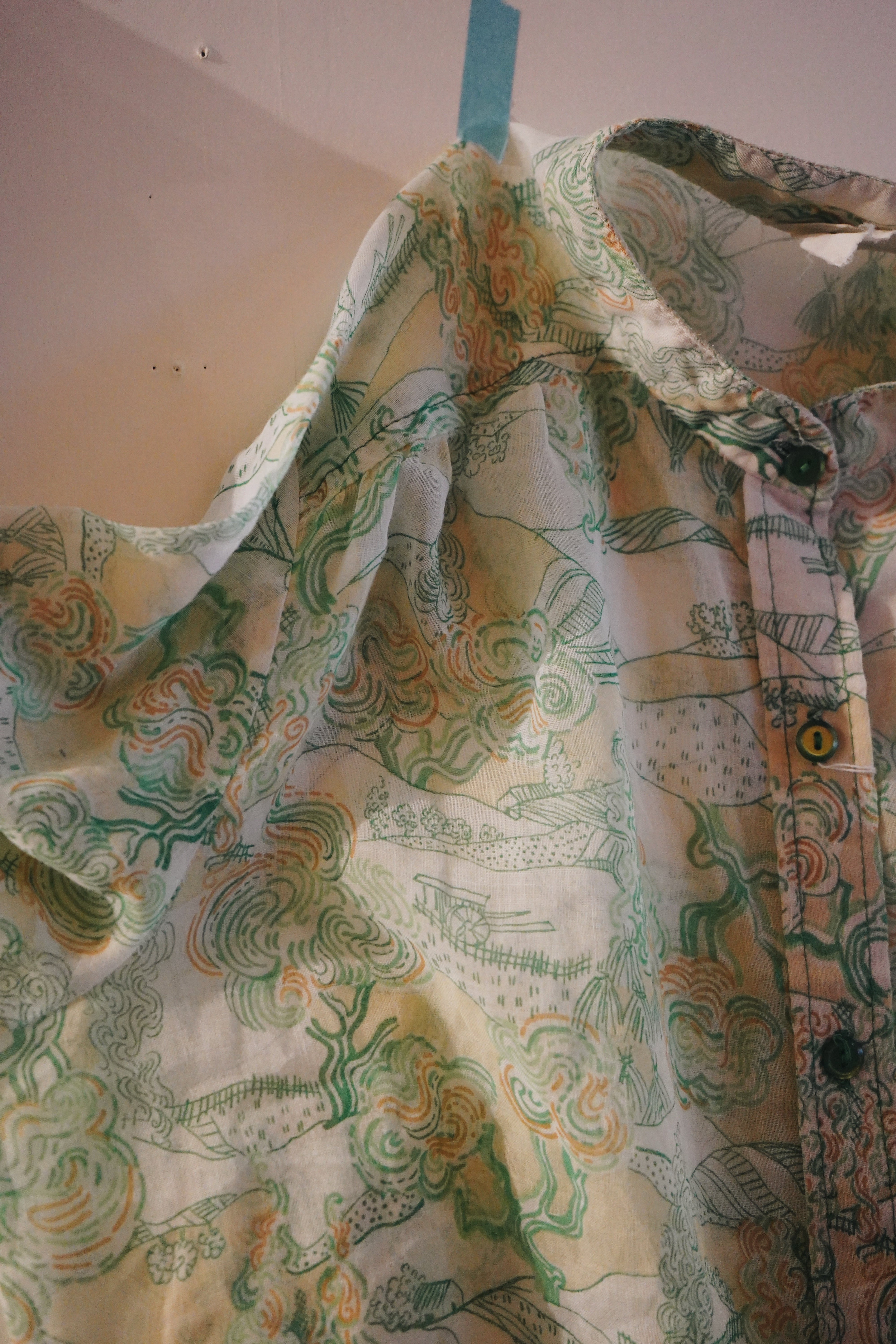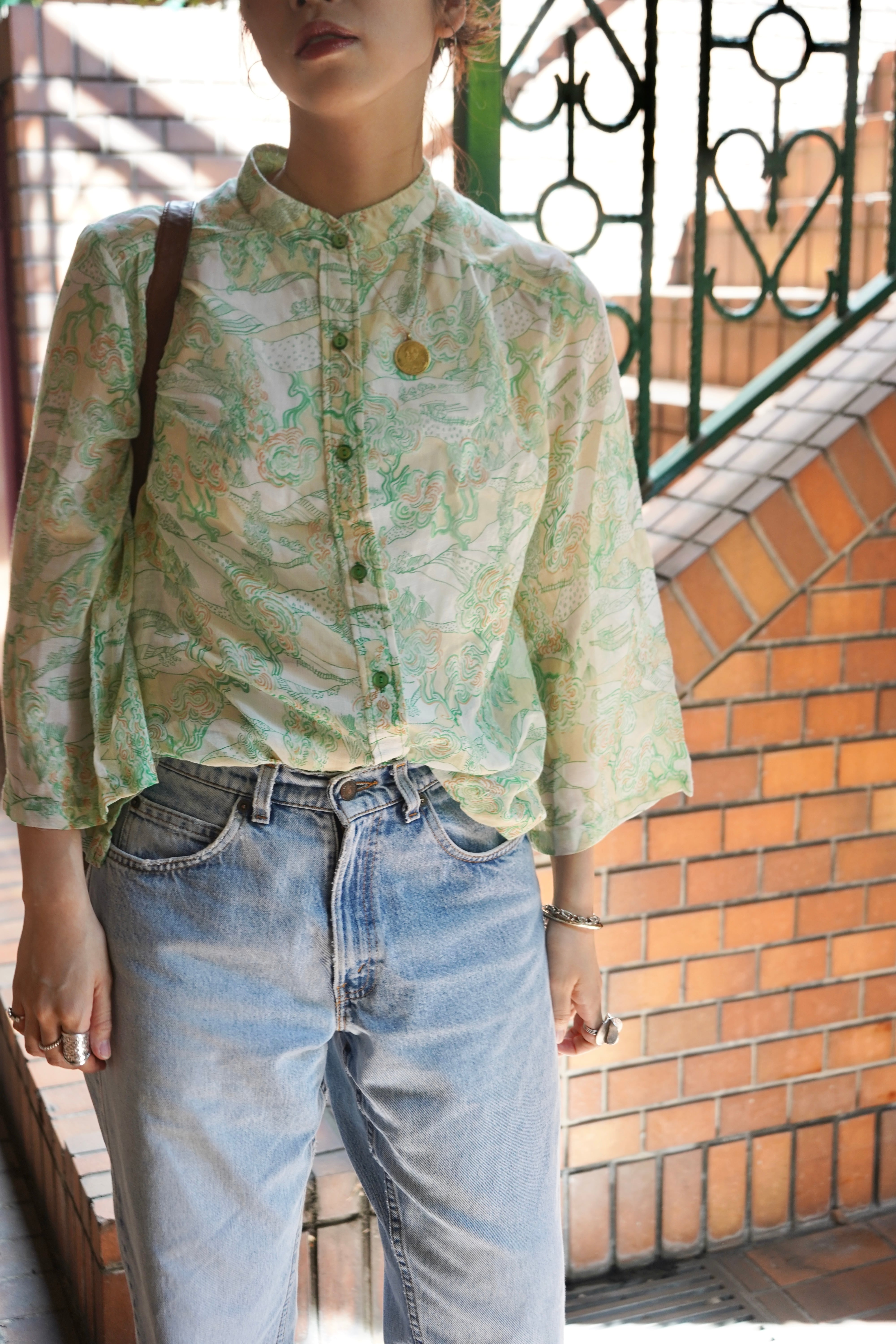 70s pattern sheer blouse