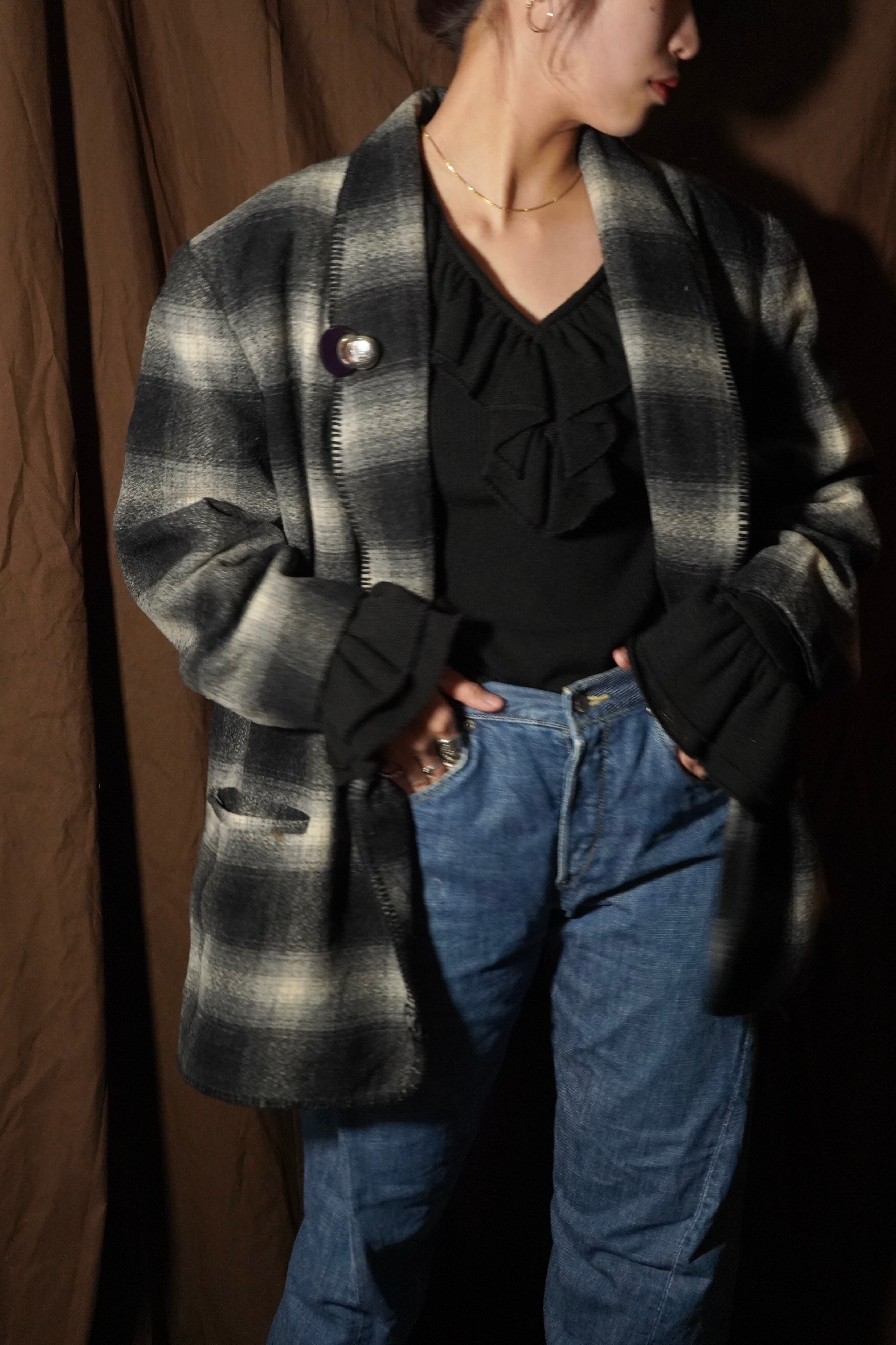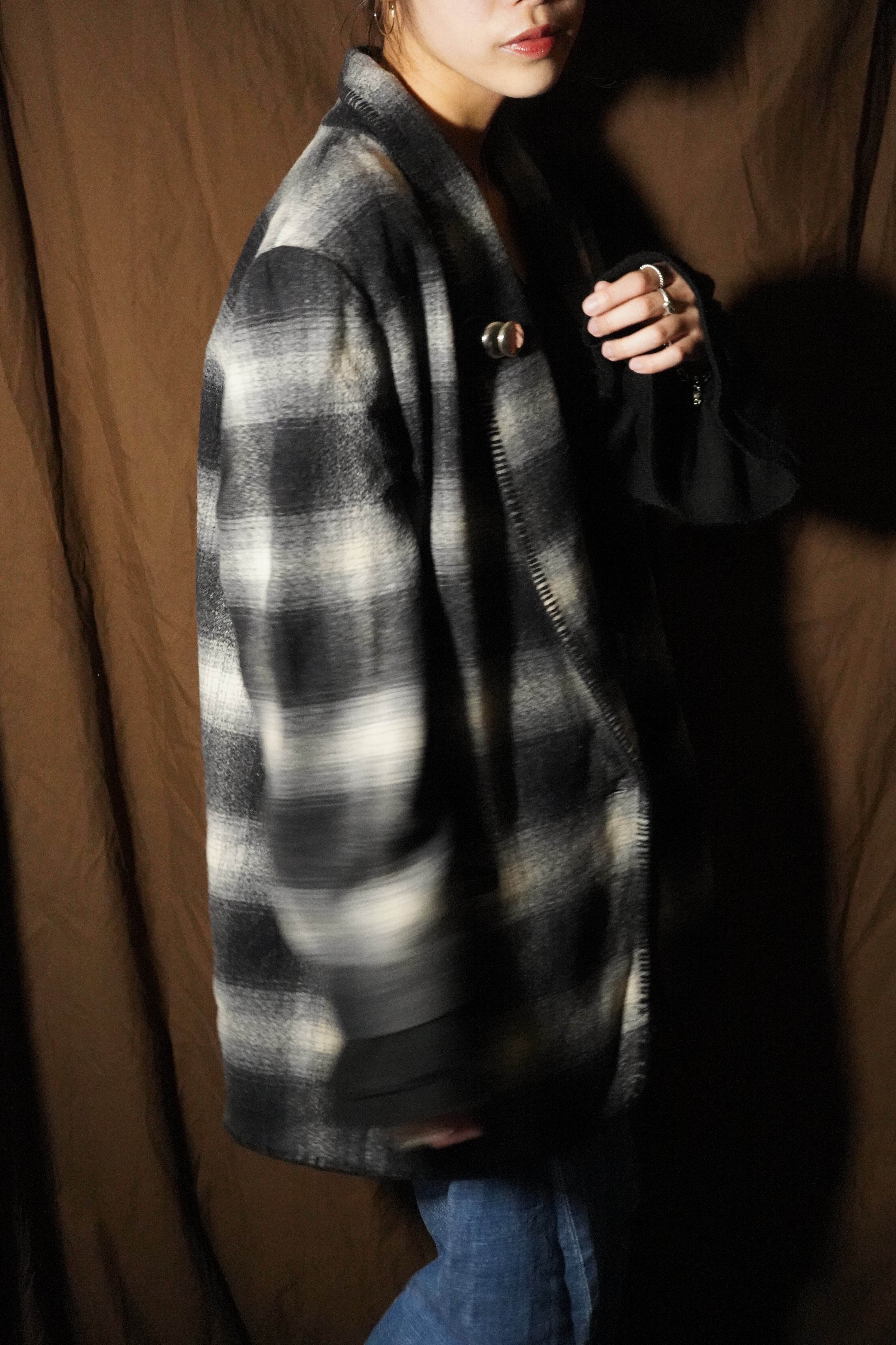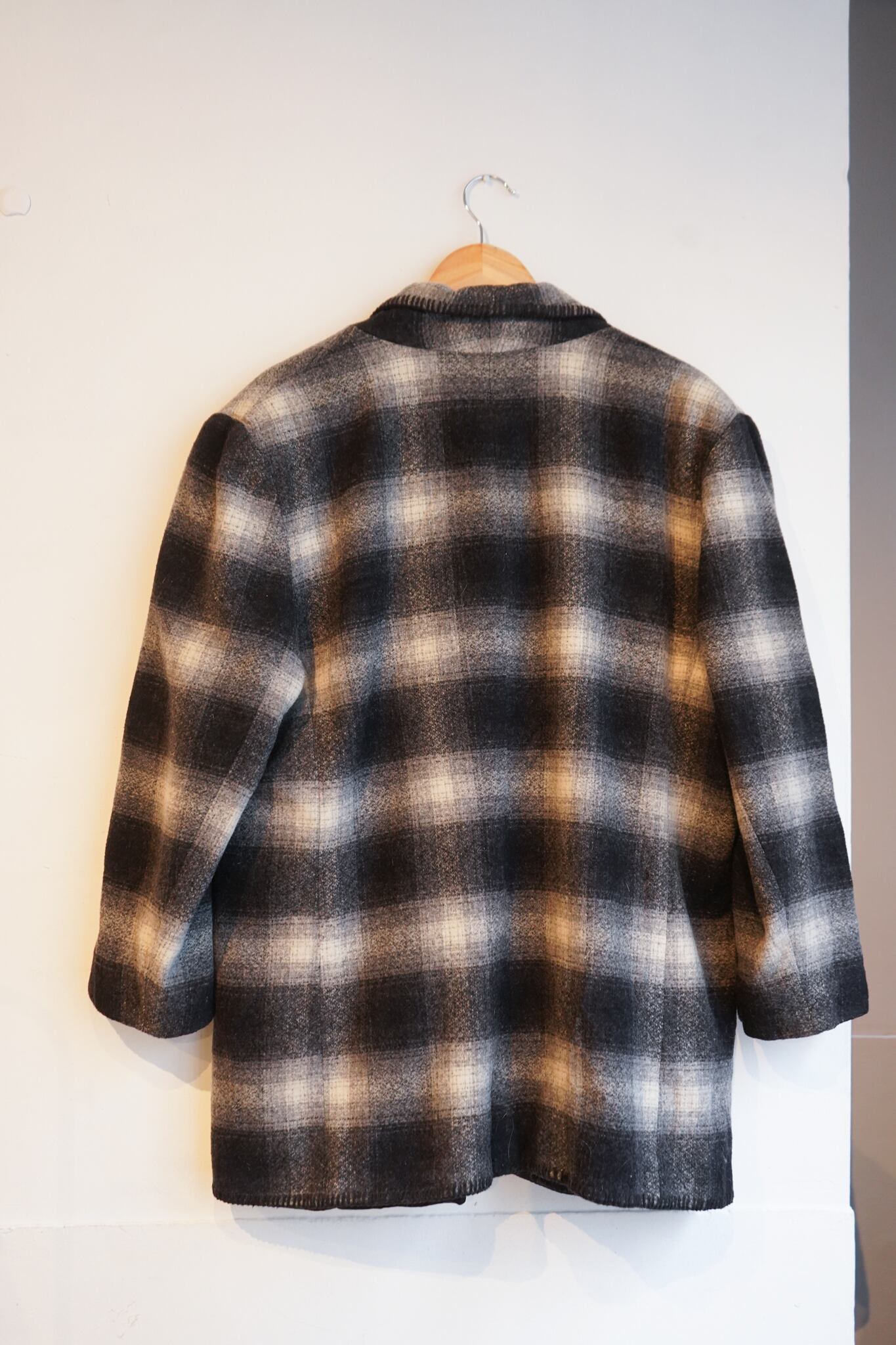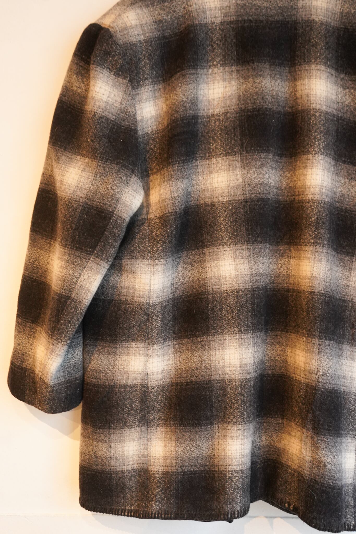 大判なバッファローチェックパターン。表地はウール素材、裏地付きなので防寒性も◎