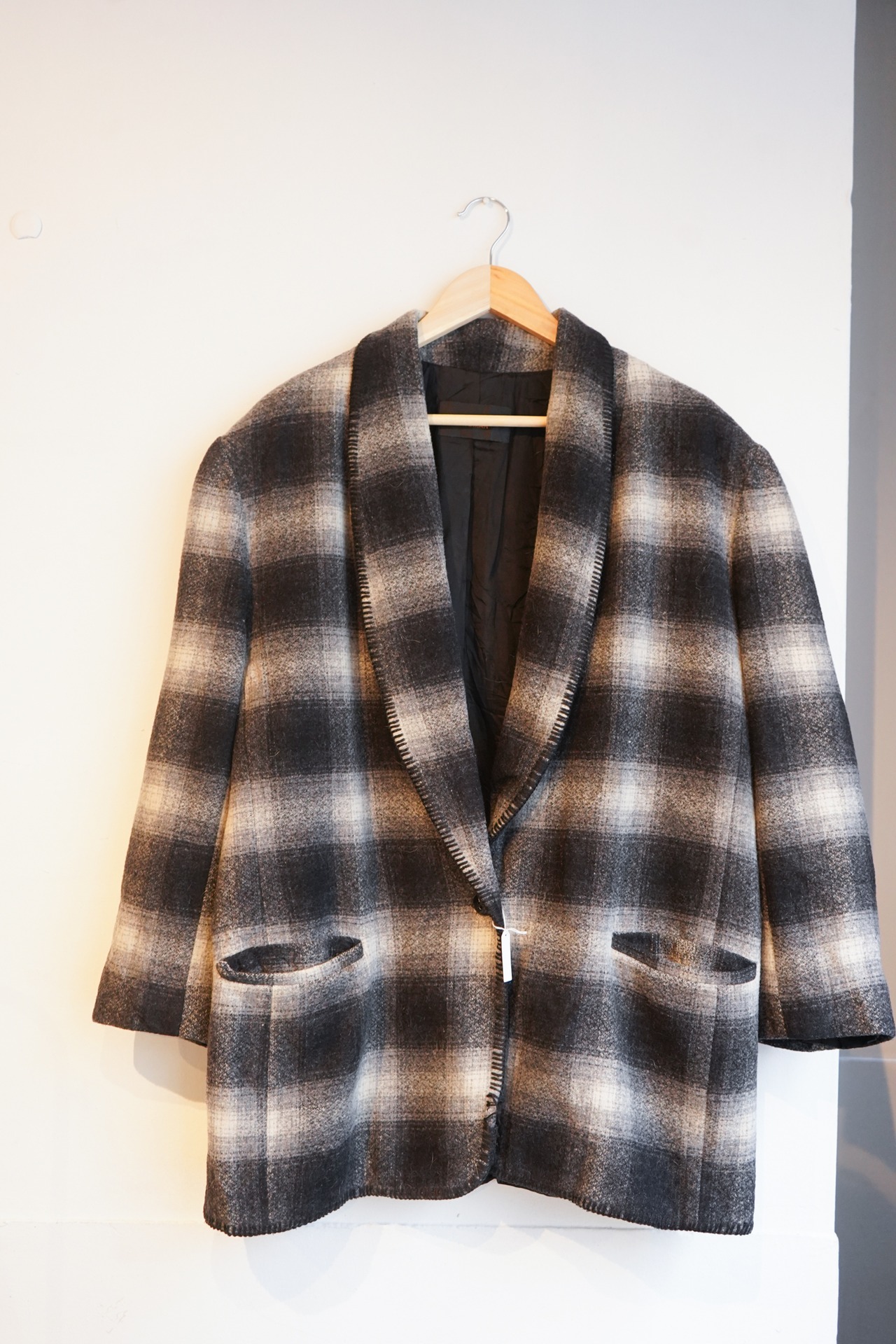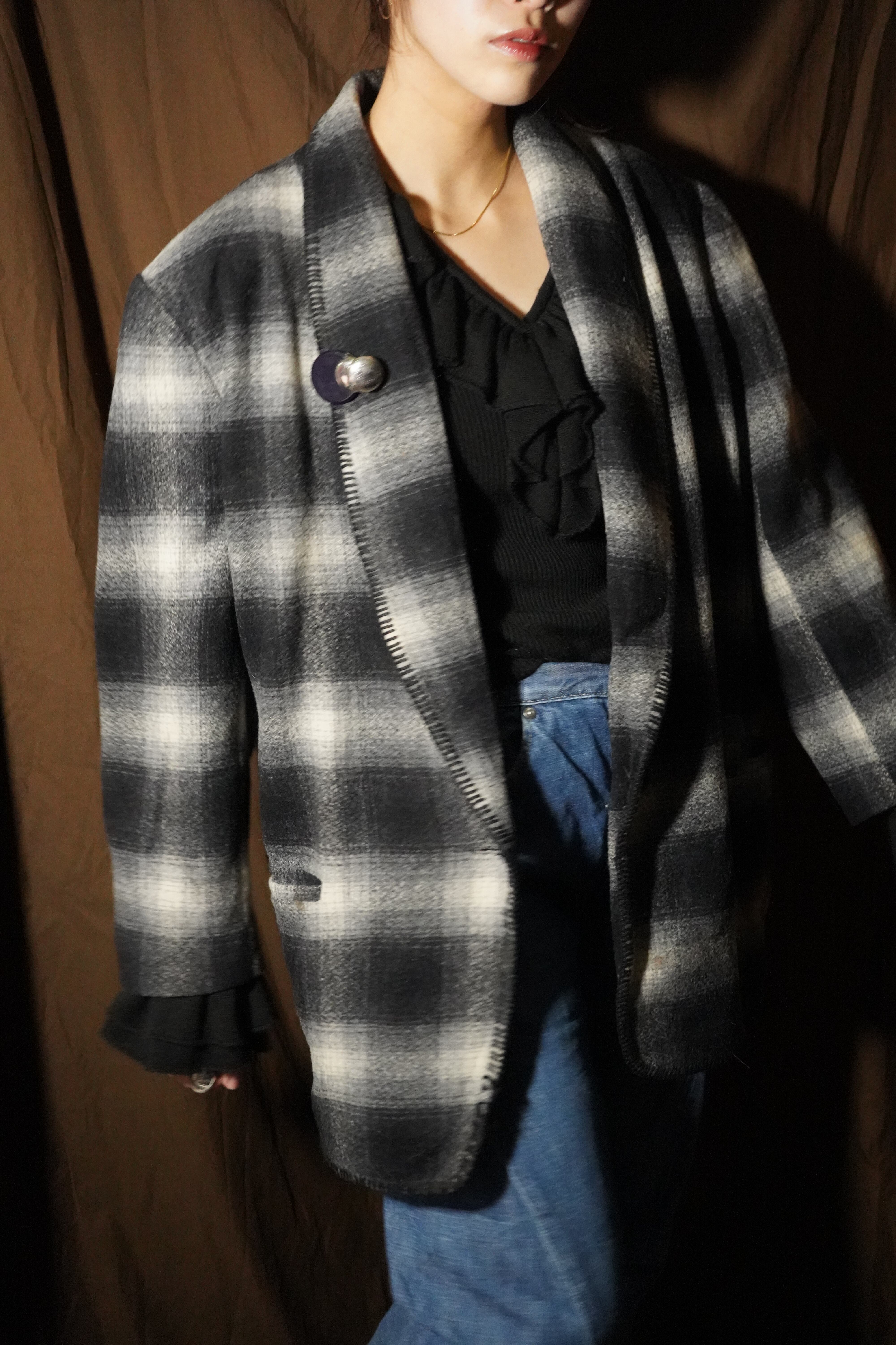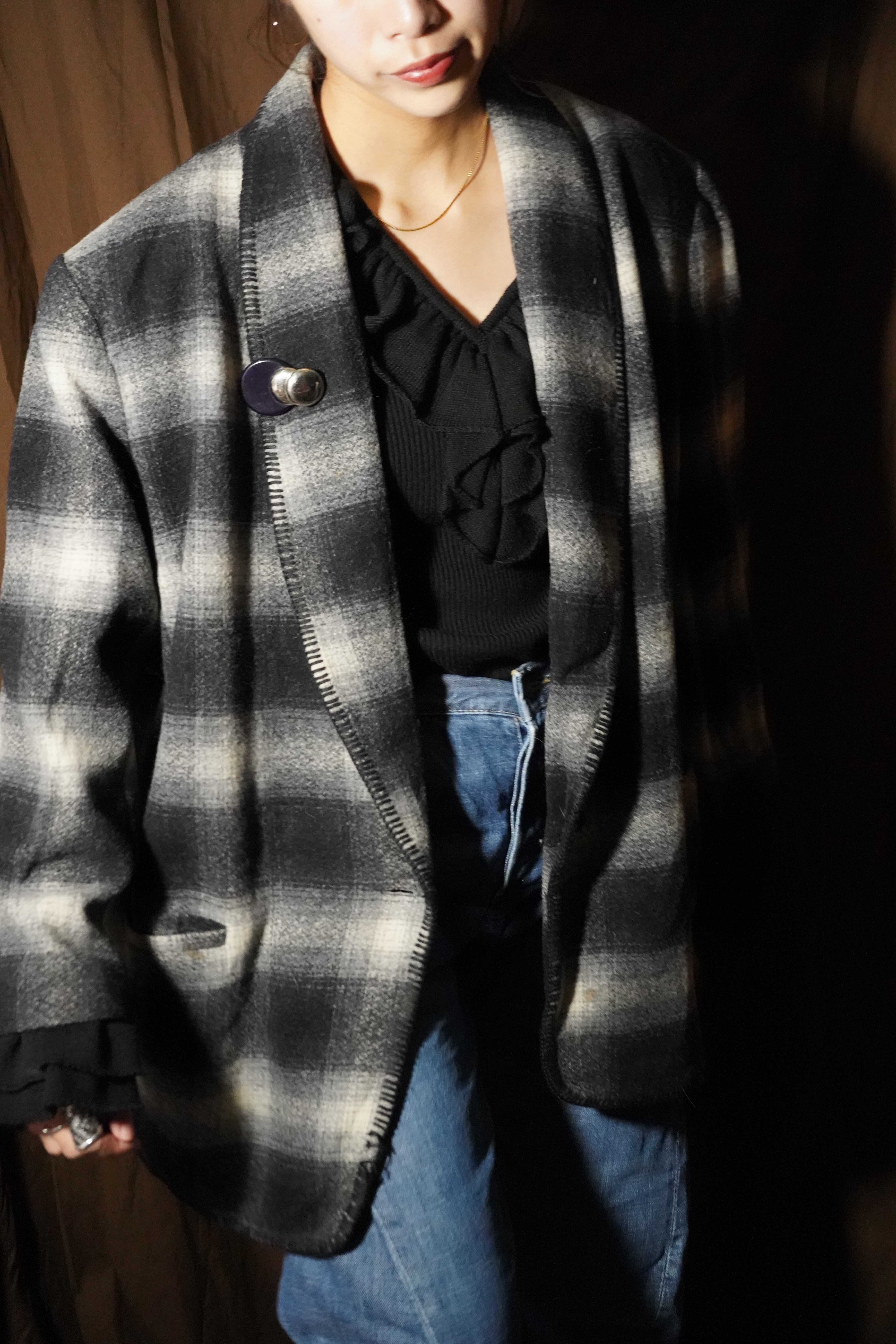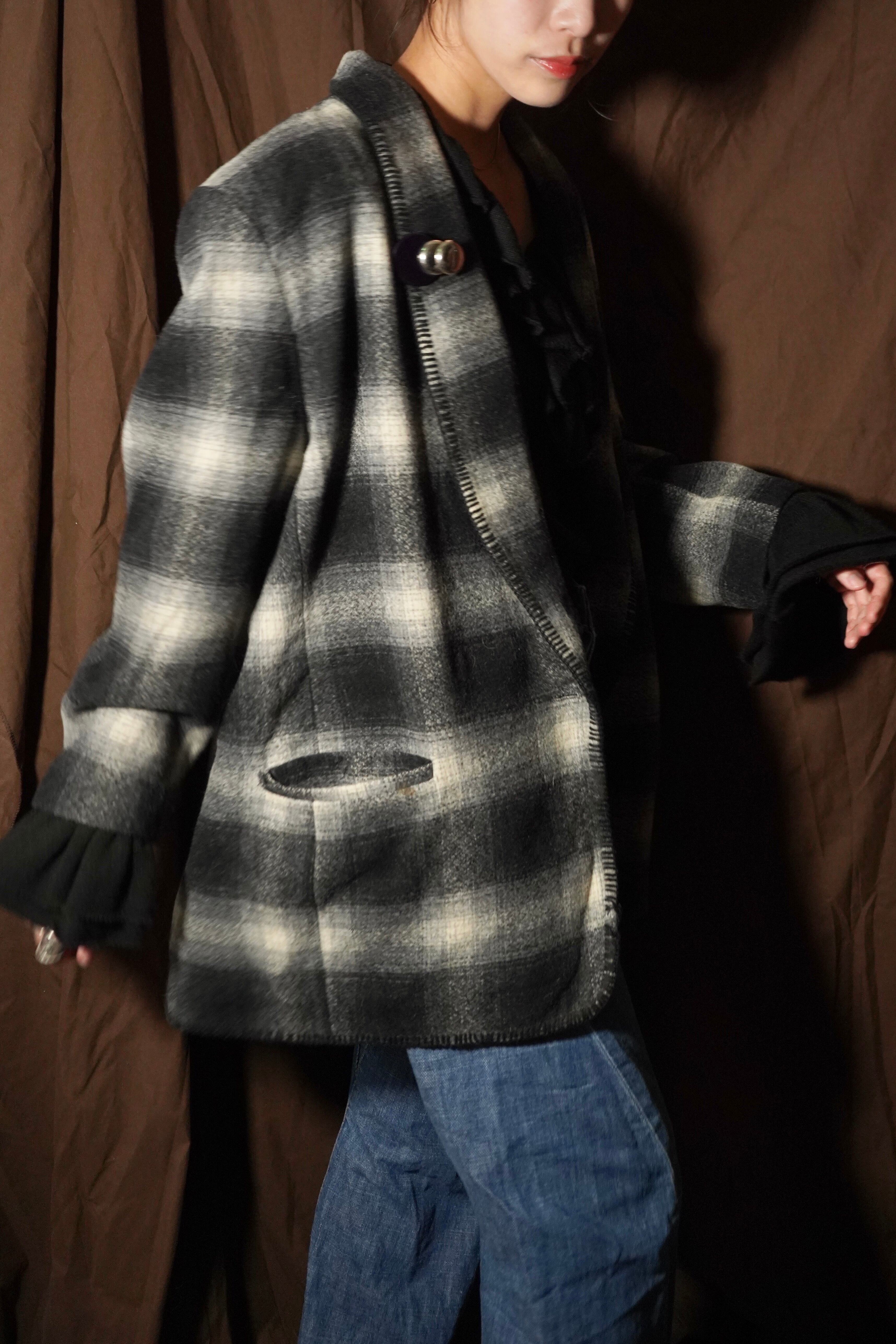 大判なバッファローチェックパターン。表地はウール素材、裏地付きなので防寒性も◎
